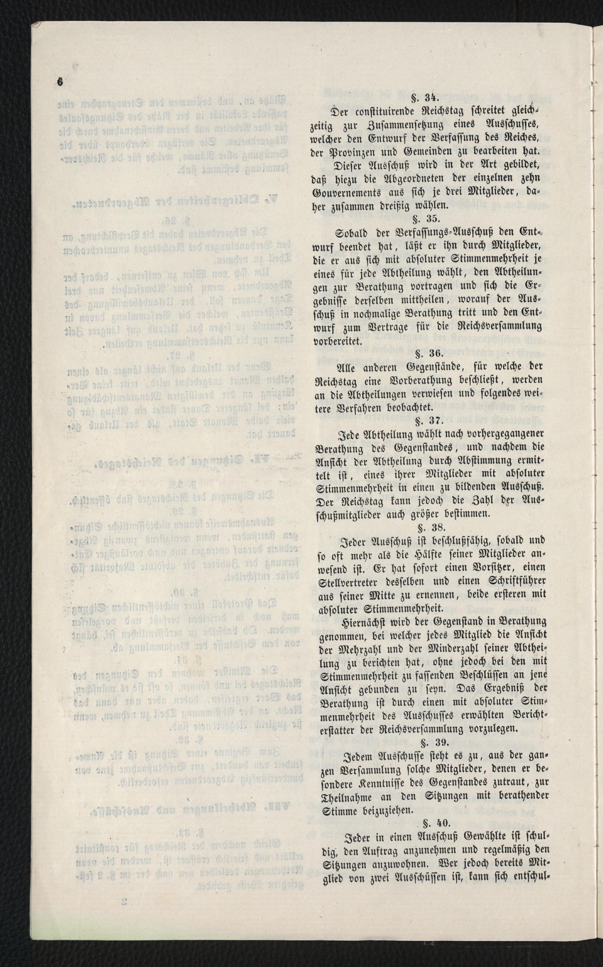 Geschäfts-Ordnung für den constituirenden Reichstag : I. Provisorische Bildung des Vorstandes und Prüfung der Wahlen. §. 1. Die Geschäfte des Vorstandes der Reichsversammlung werden durch einen Präsidenten, zwei Vice-Präsidenten und sechs Schriftführer versehen ...