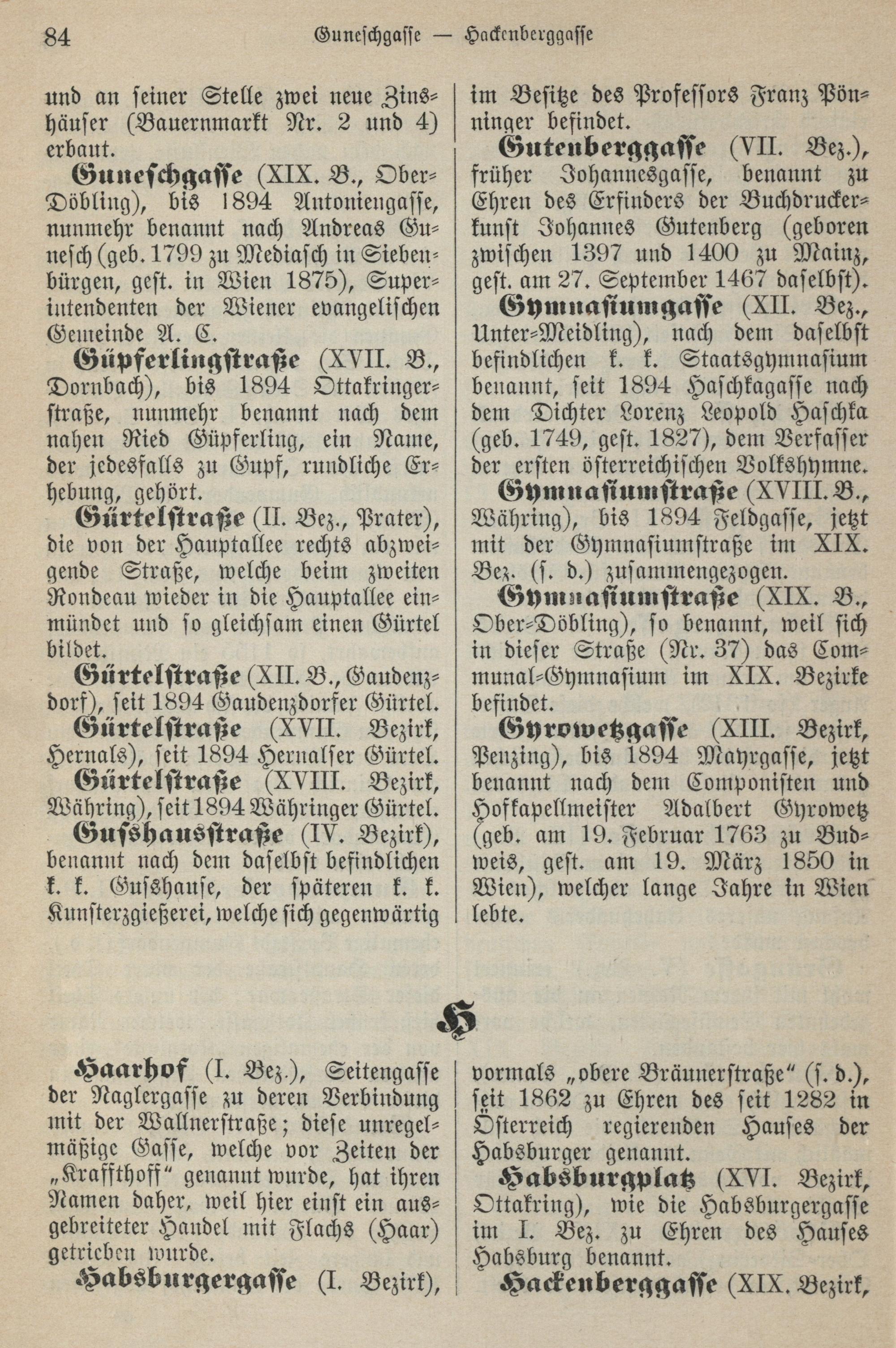 Namenbuch der Stadt Wien : die Namen der Straßen und Gassen, Plätze und Höfe, Vorstädte und Vororte im alten und neuen Wien / erklärt von Professor Dr. Friedrich Umlauft
