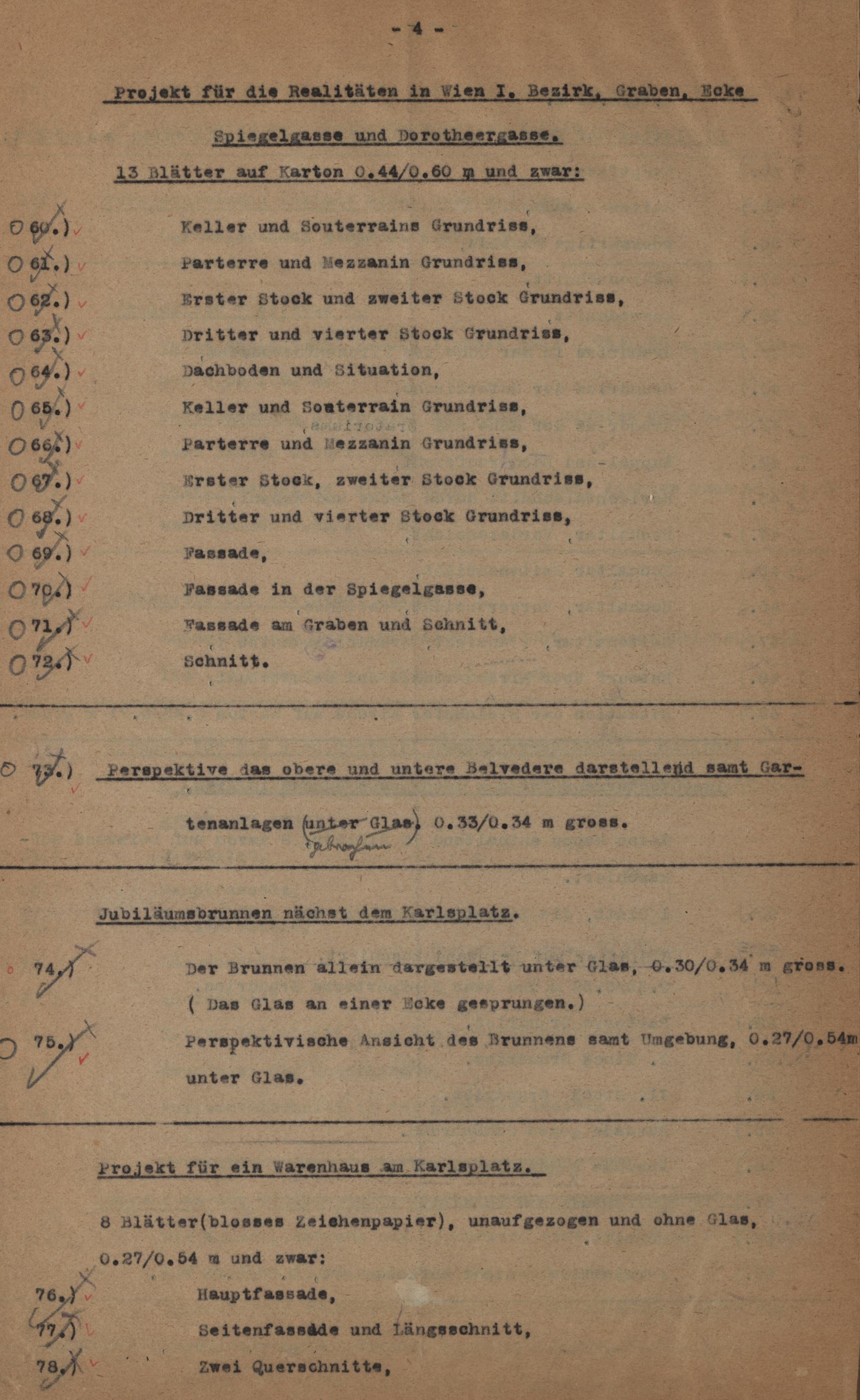Inventar über die von Oberbaurat Otto Wagner stammenden Pläne und Zeichnungen : (Schenkung Otto Wagner juniors) ; [zu D.-Z. 3629/1919 - Architekt Otto Wagner, Künstlerischer Nachlass ; Bestand-Verzeichnis N-18967/1-262]