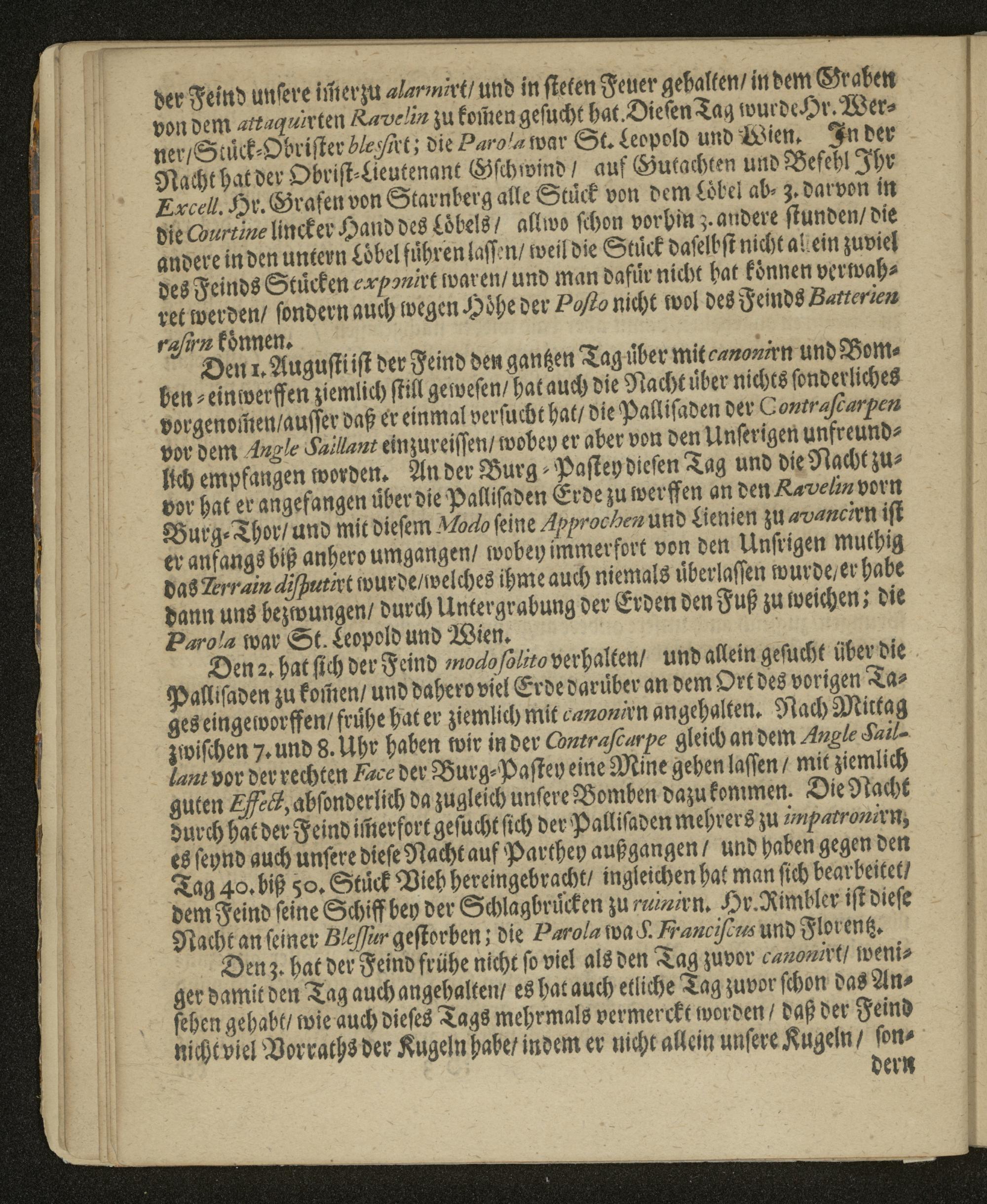Glaubwürdigstes Diarium und Beschreibung, dessen was Zeit währender Türckischen Belagerung der Käyserl. Haupt- und Residentz-Stadt Wien täglich vorgangen : Von einem Käyserl. Officier, so sich vom Anfang biß zum Ende darinnen befunden, warhafftig verzeichnet und zusammen getragen