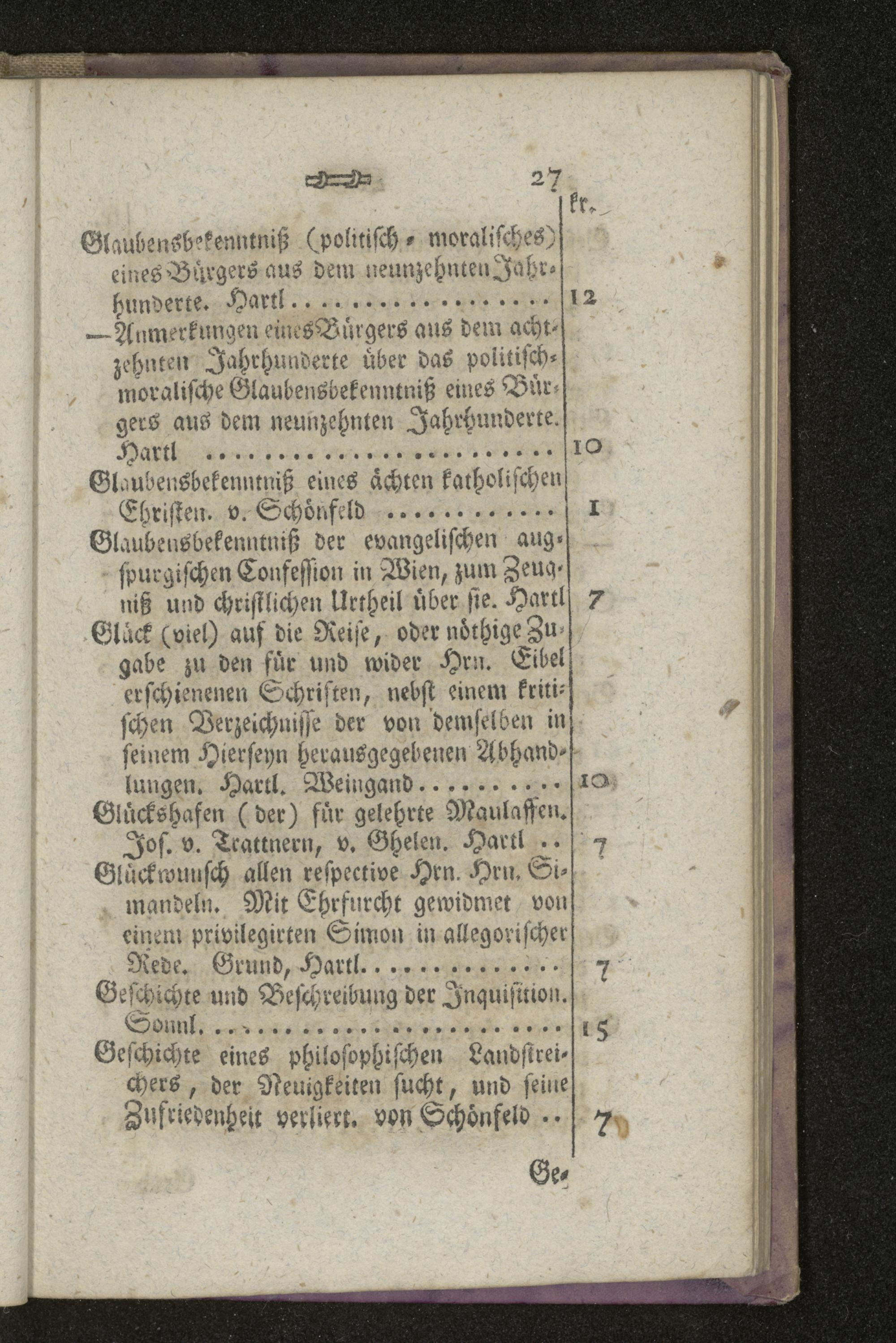Alphabetisches Verzeichniß derjenigen Brochüren und Schriften, welche seit der erhaltenen Preßfreyheit herausgekommen sind : 1tes Alphabet bis Ende Augusts 1782 / Verfertiget von Anton F. V. Geißau