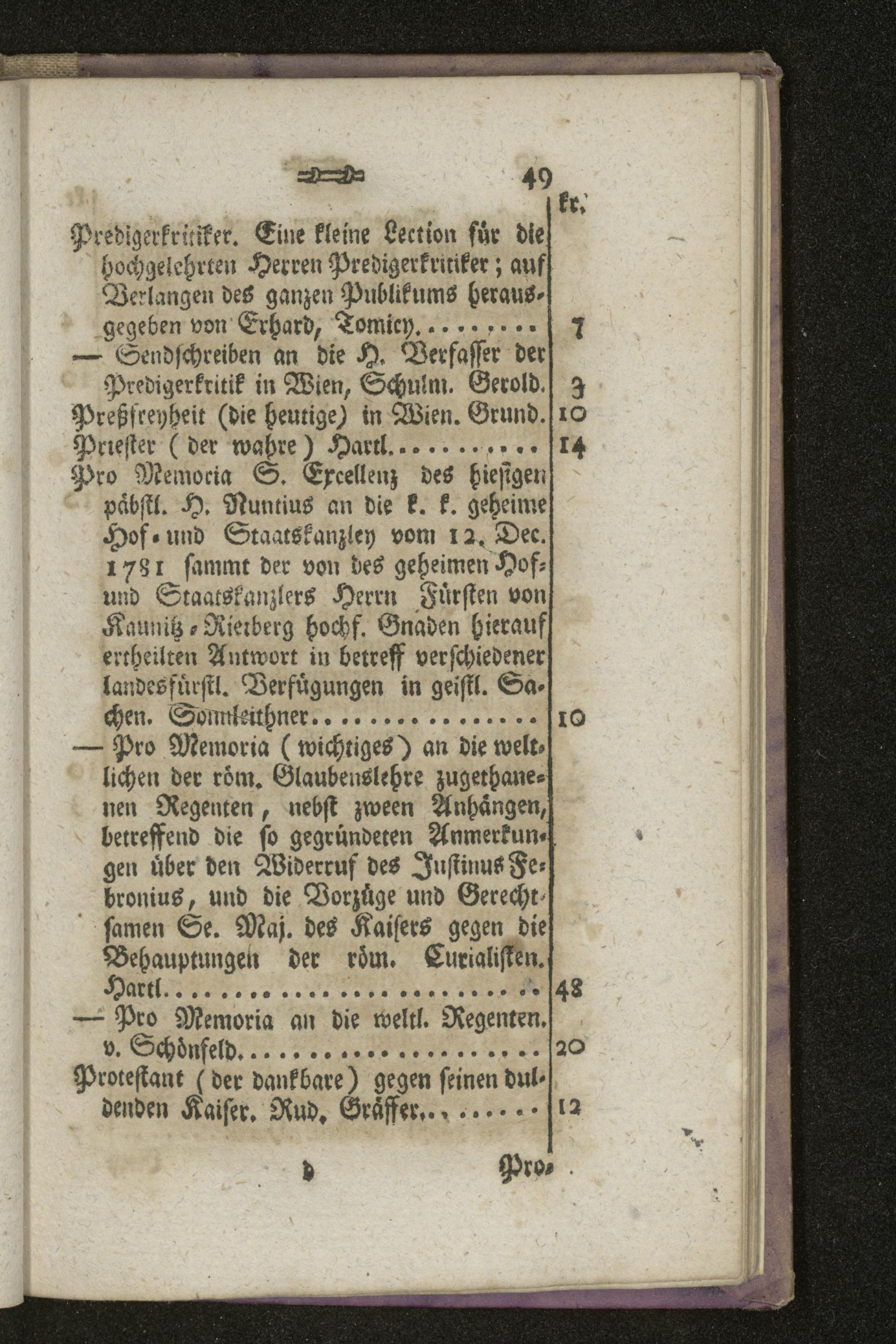 Alphabetisches Verzeichniß derjenigen Brochüren und Schriften, welche seit der erhaltenen Preßfreyheit herausgekommen sind : 1tes Alphabet bis Ende Augusts 1782 / Verfertiget von Anton F. V. Geißau