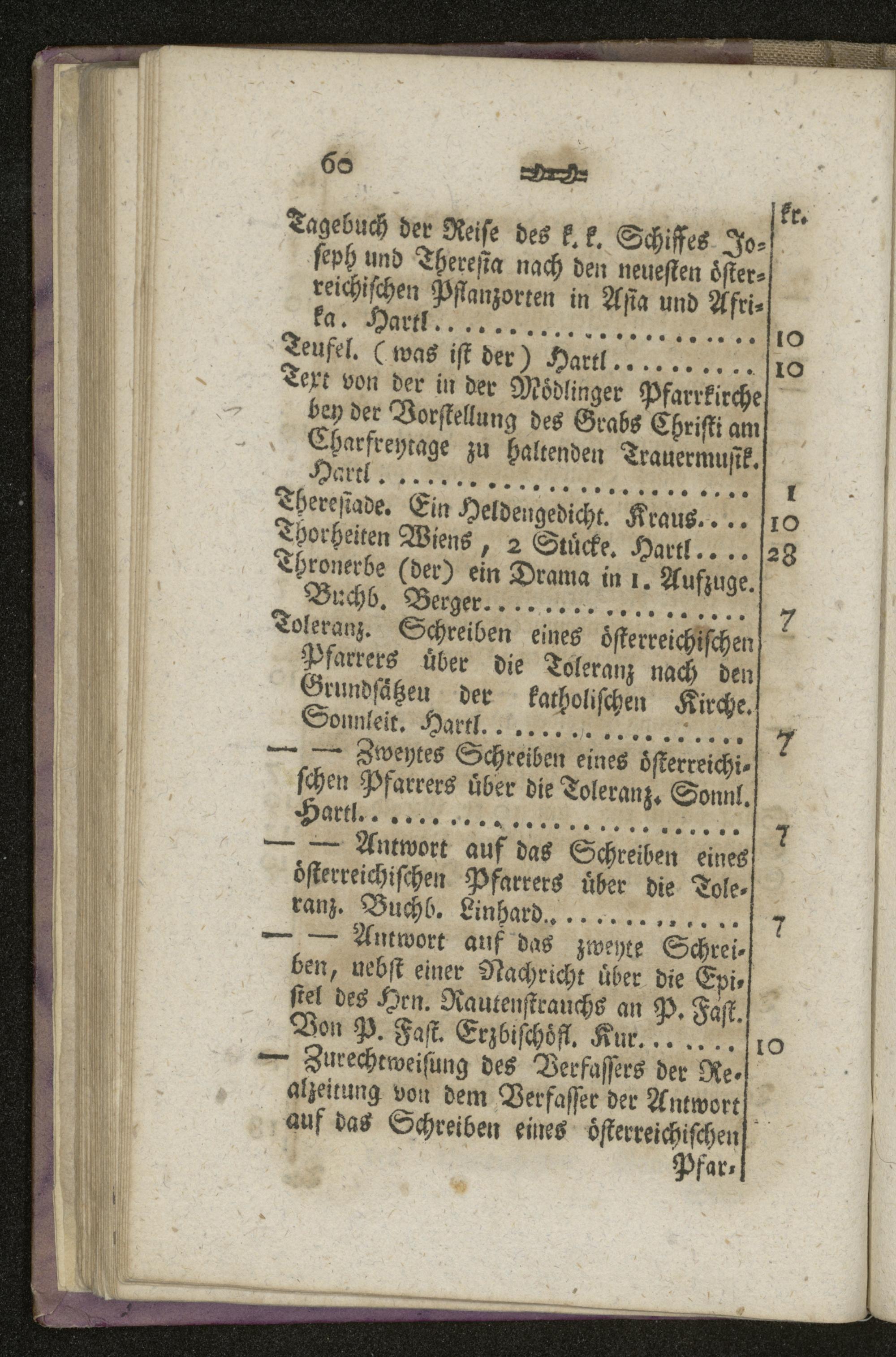 Alphabetisches Verzeichniß derjenigen Brochüren und Schriften, welche seit der erhaltenen Preßfreyheit herausgekommen sind : 1tes Alphabet bis Ende Augusts 1782 / Verfertiget von Anton F. V. Geißau