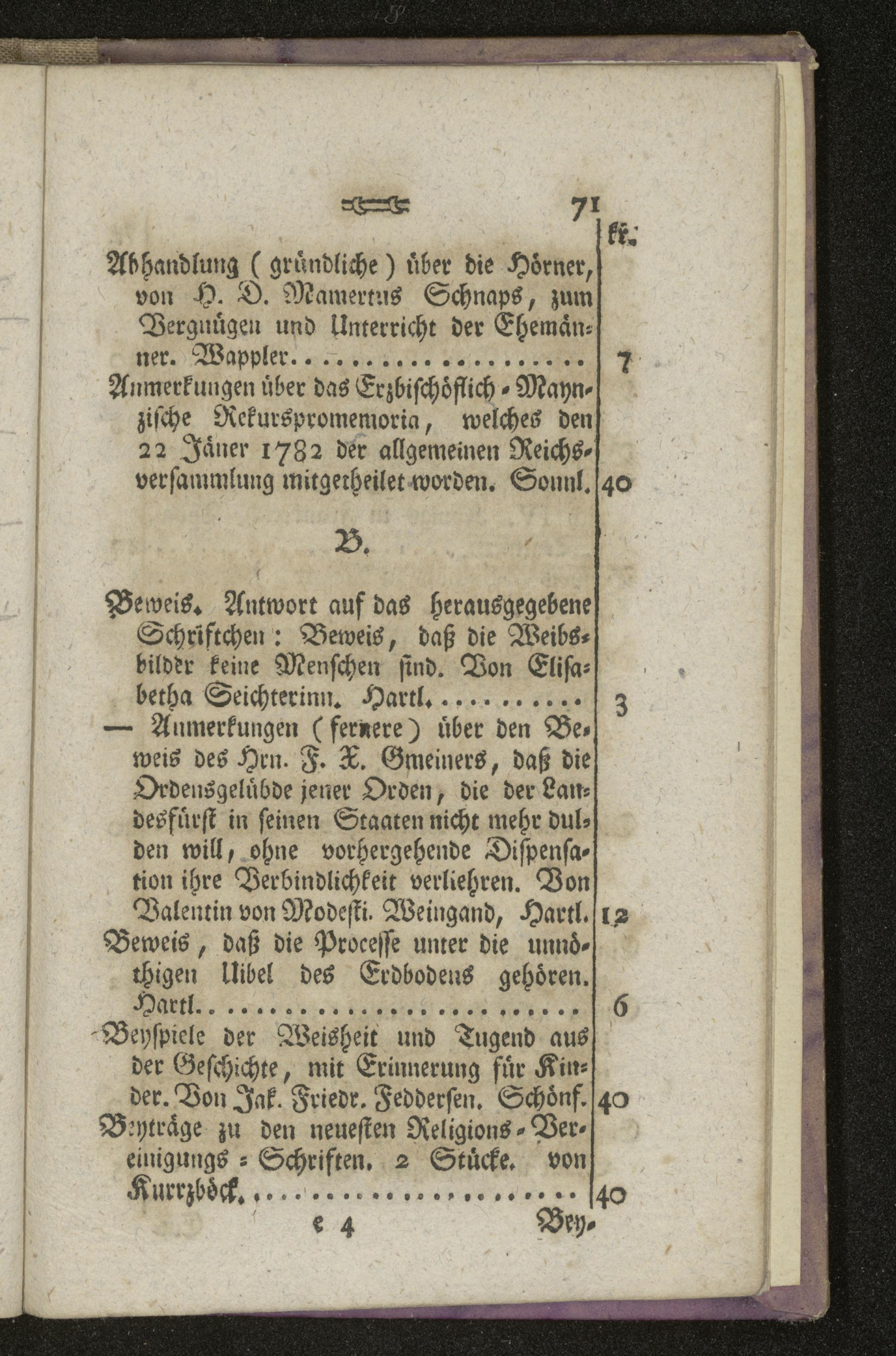 Alphabetisches Verzeichniß derjenigen Brochüren und Schriften, welche seit der erhaltenen Preßfreyheit herausgekommen sind : 1tes Alphabet bis Ende Augusts 1782 / Verfertiget von Anton F. V. Geißau