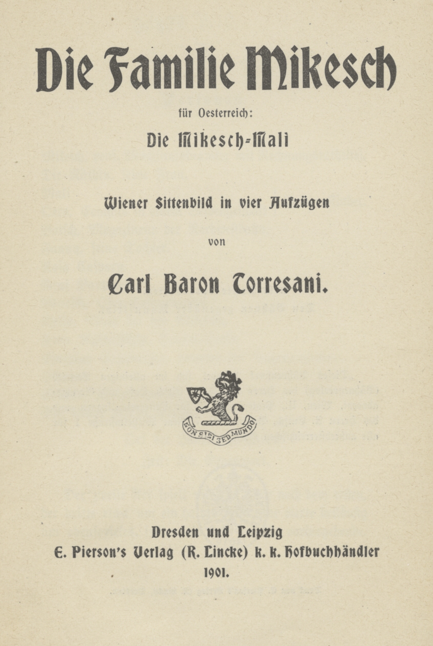 Die Familie Mikesch : für Oesterreich: Die Mikesch-Mali ; Wiener Sittenbild in vier Aufzügen / von Carl Baron Torresani
