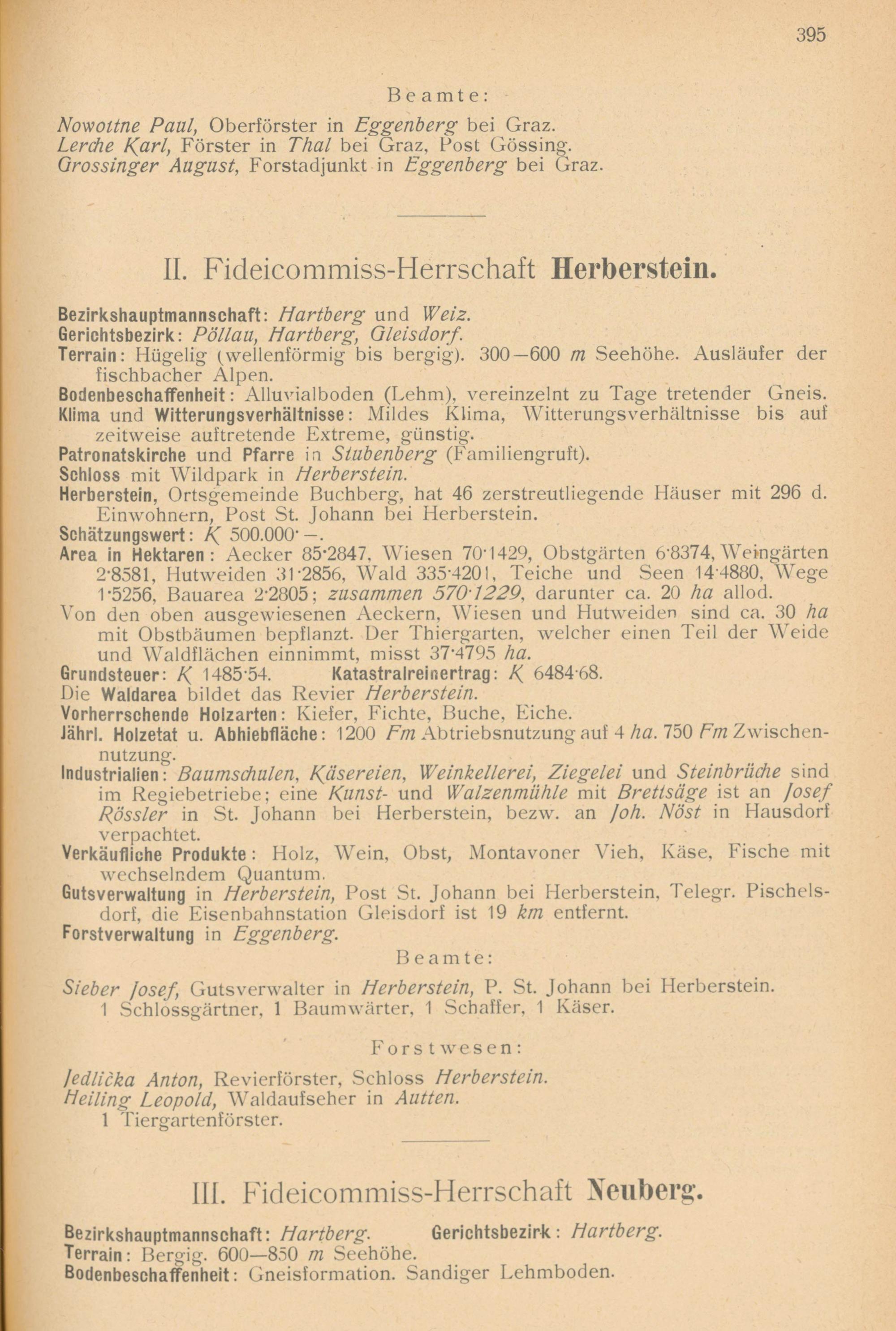 Schematismus und Statistik des Großgrundbesitzes in den Erzherzogtümern Nieder- u. Oberösterreich und im Herzogtume Steiermark / von Ig. Tittel