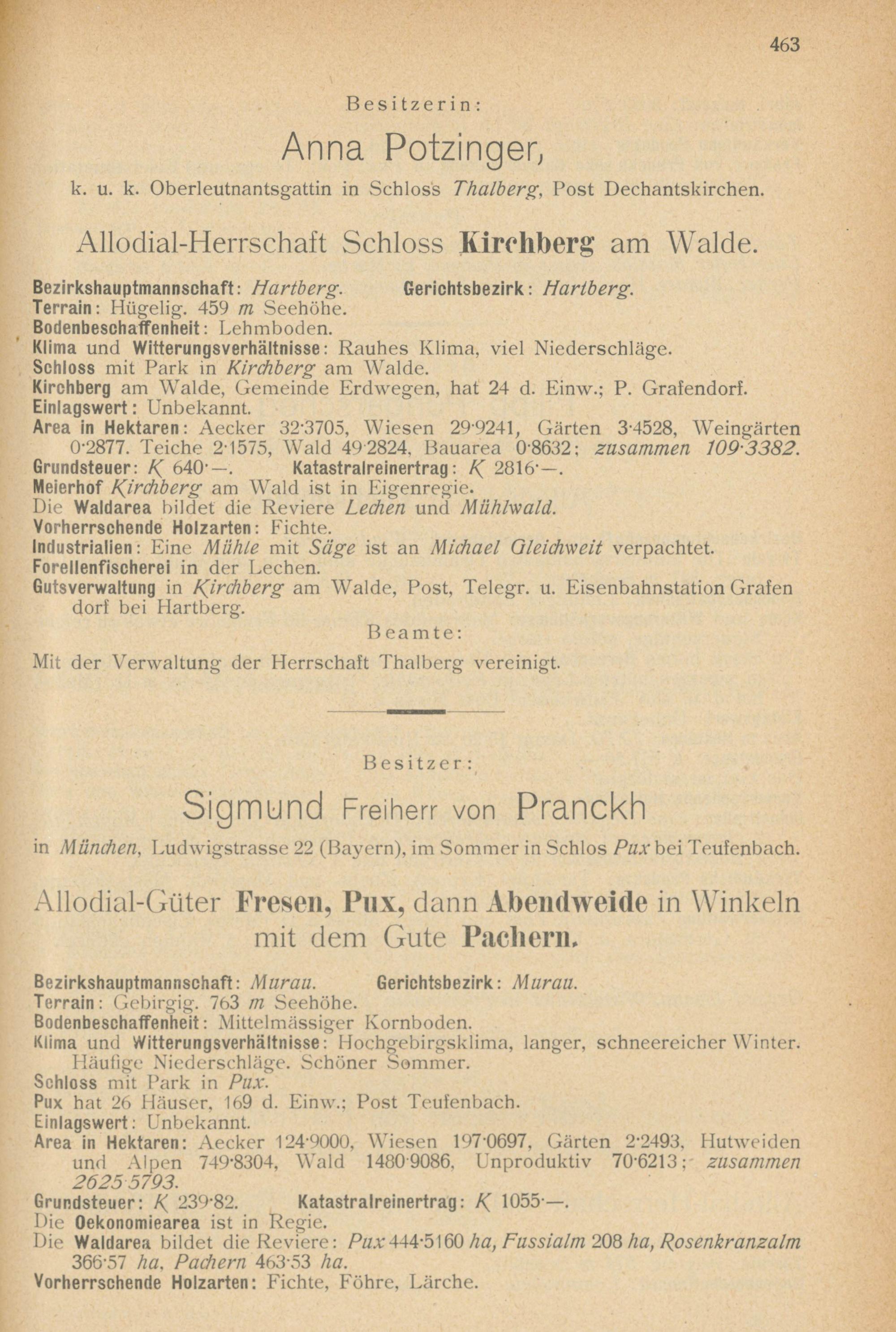 Schematismus und Statistik des Großgrundbesitzes in den Erzherzogtümern Nieder- u. Oberösterreich und im Herzogtume Steiermark / von Ig. Tittel