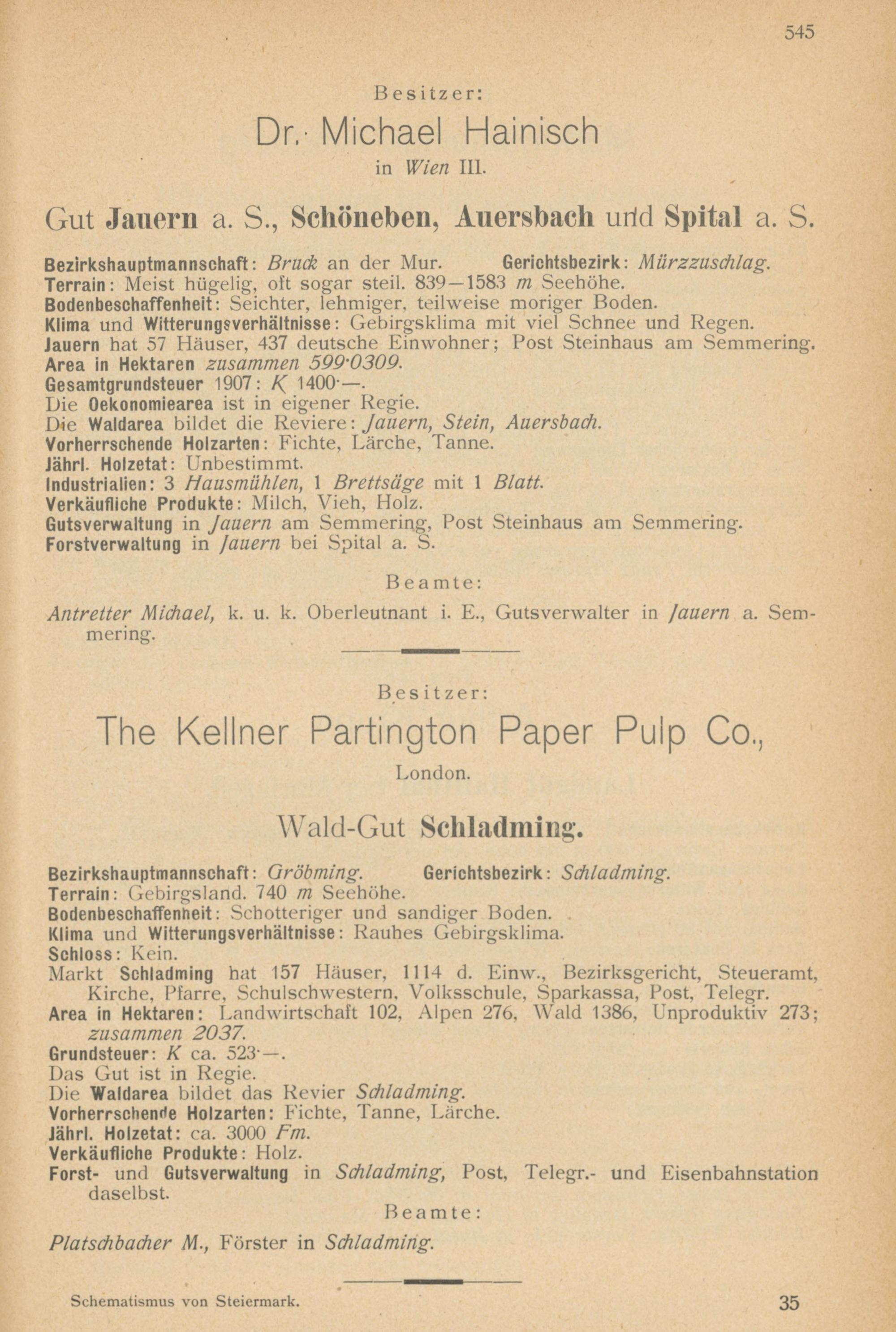 Schematismus und Statistik des Großgrundbesitzes in den Erzherzogtümern Nieder- u. Oberösterreich und im Herzogtume Steiermark / von Ig. Tittel
