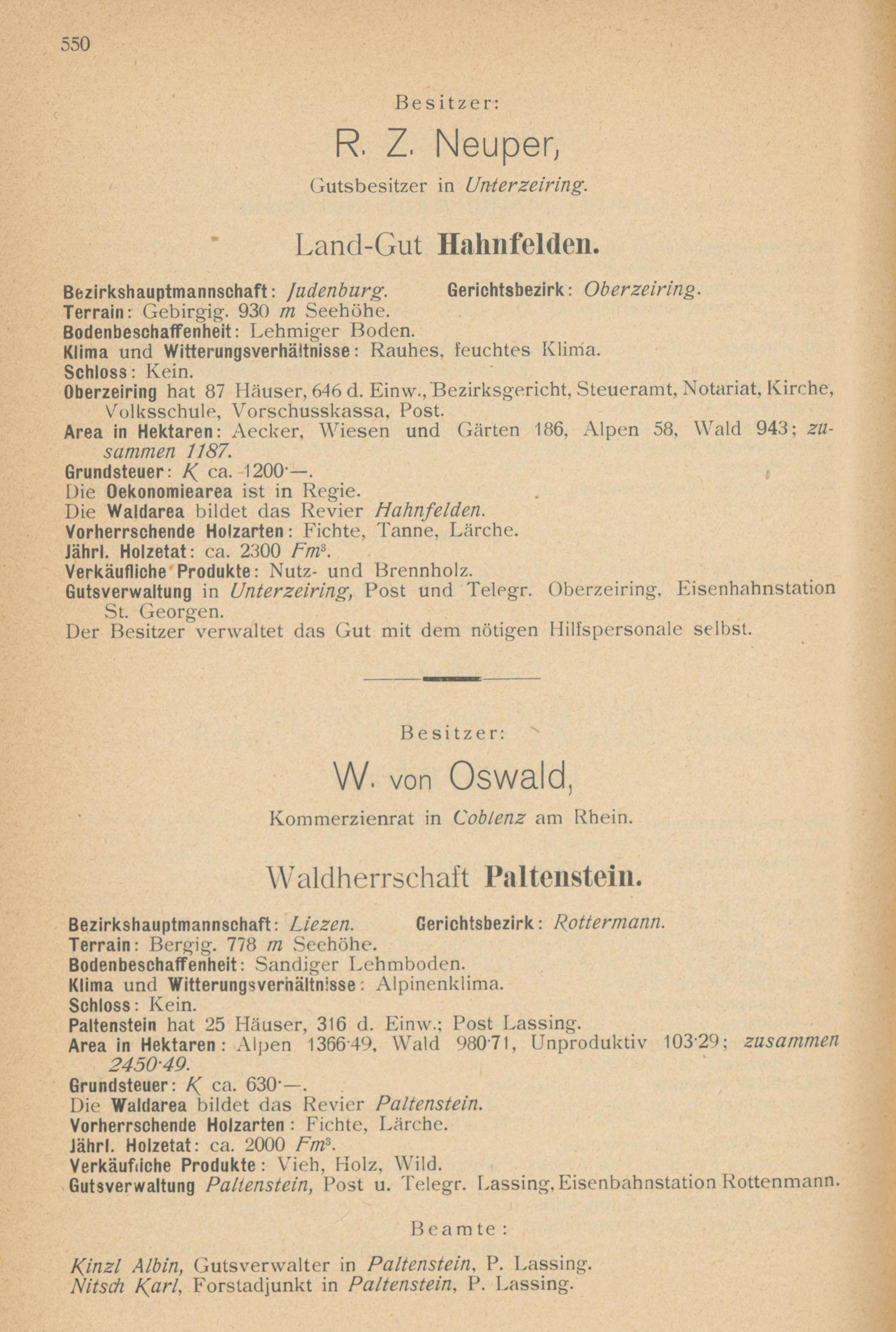 Schematismus und Statistik des Großgrundbesitzes in den Erzherzogtümern Nieder- u. Oberösterreich und im Herzogtume Steiermark / von Ig. Tittel