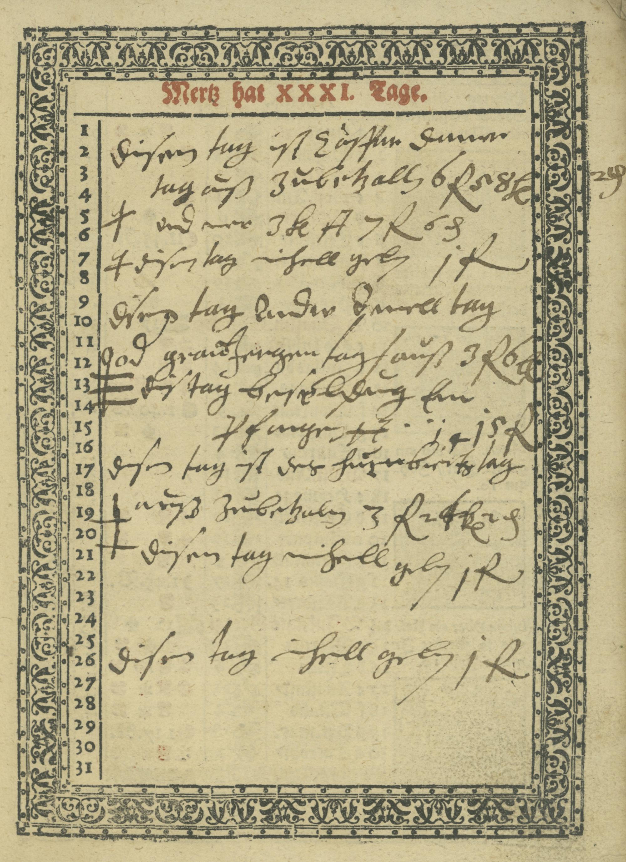 SchreibCalender, Auff das Jar, Nach der Geburt Christi vnsers Säligmachers, M. D. LXXX. / Gestellet durch Paulum Fabricium, Röm. Kay. Mt. [et]c. Mathematicum, der Ertzney Doctorem
