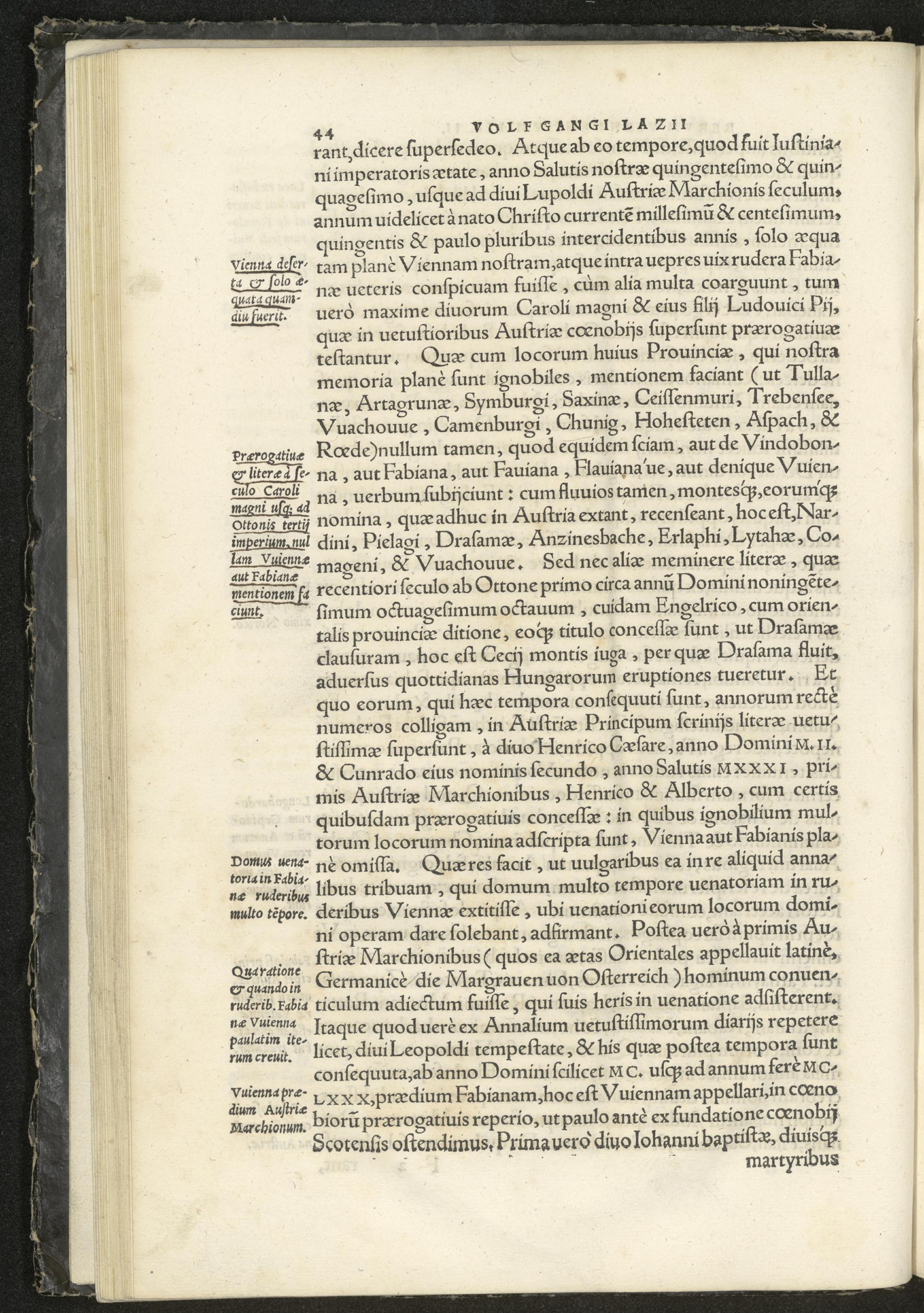 Vienna Austriae : rerum Viennensium comentarij in quatuor libros distincti, in quib. celeberrimae illius Austriae civitatis exordia, vetustas, nobilitas, magistratus, familiaeque / ad plenum (quod aiunt) explicantur Vvolfgango Lazio Viennensi medico & philosopho autore