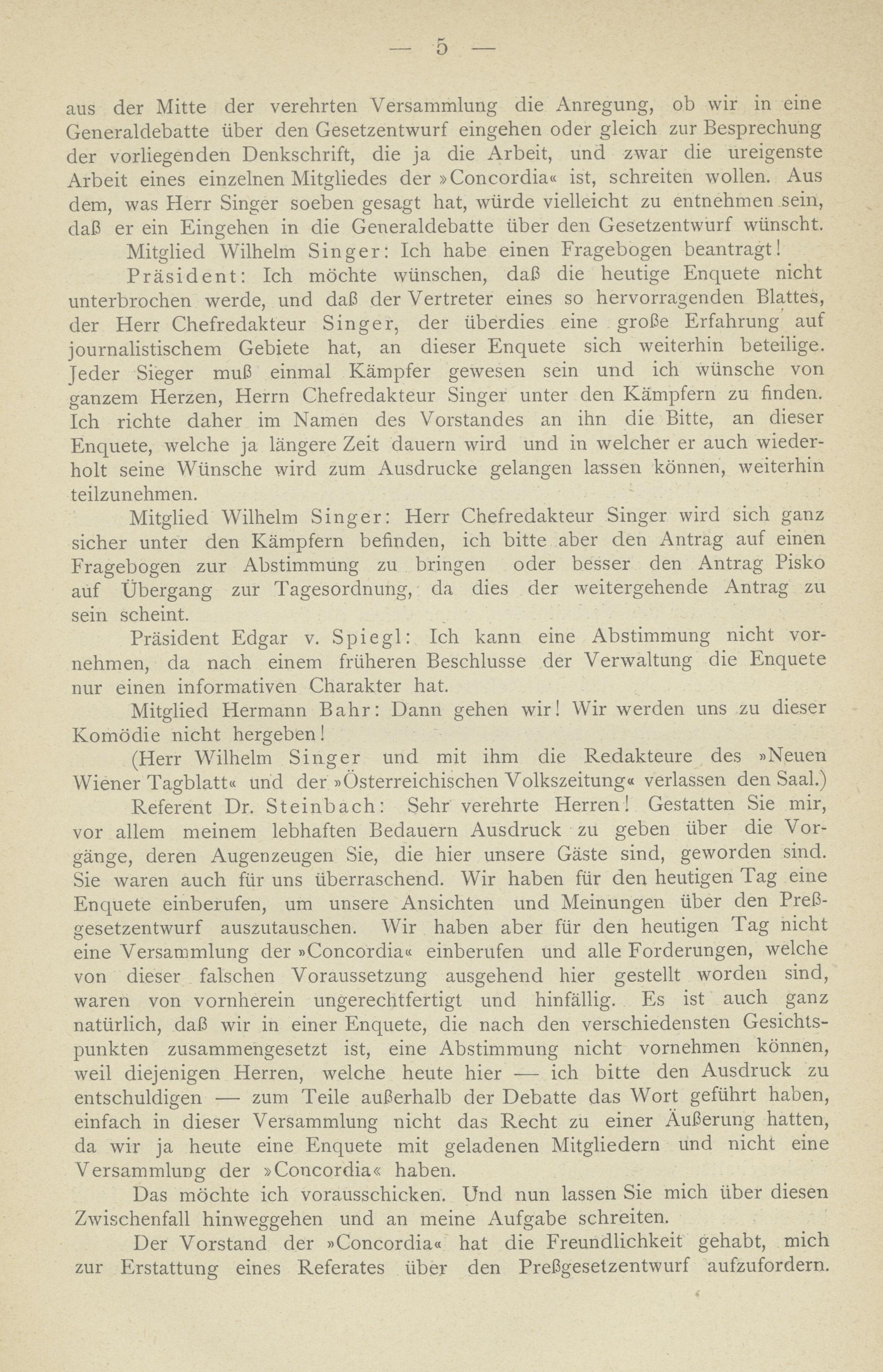 Stenographisches Protokoll der Enquete über den Pressgesetzentwurf : (eingebracht in der Sitzung des Abgeordnetenhauses am 11. Juni 1902) veranstaltet vom Journalisten- und Schriftstellerverein "Concordia".