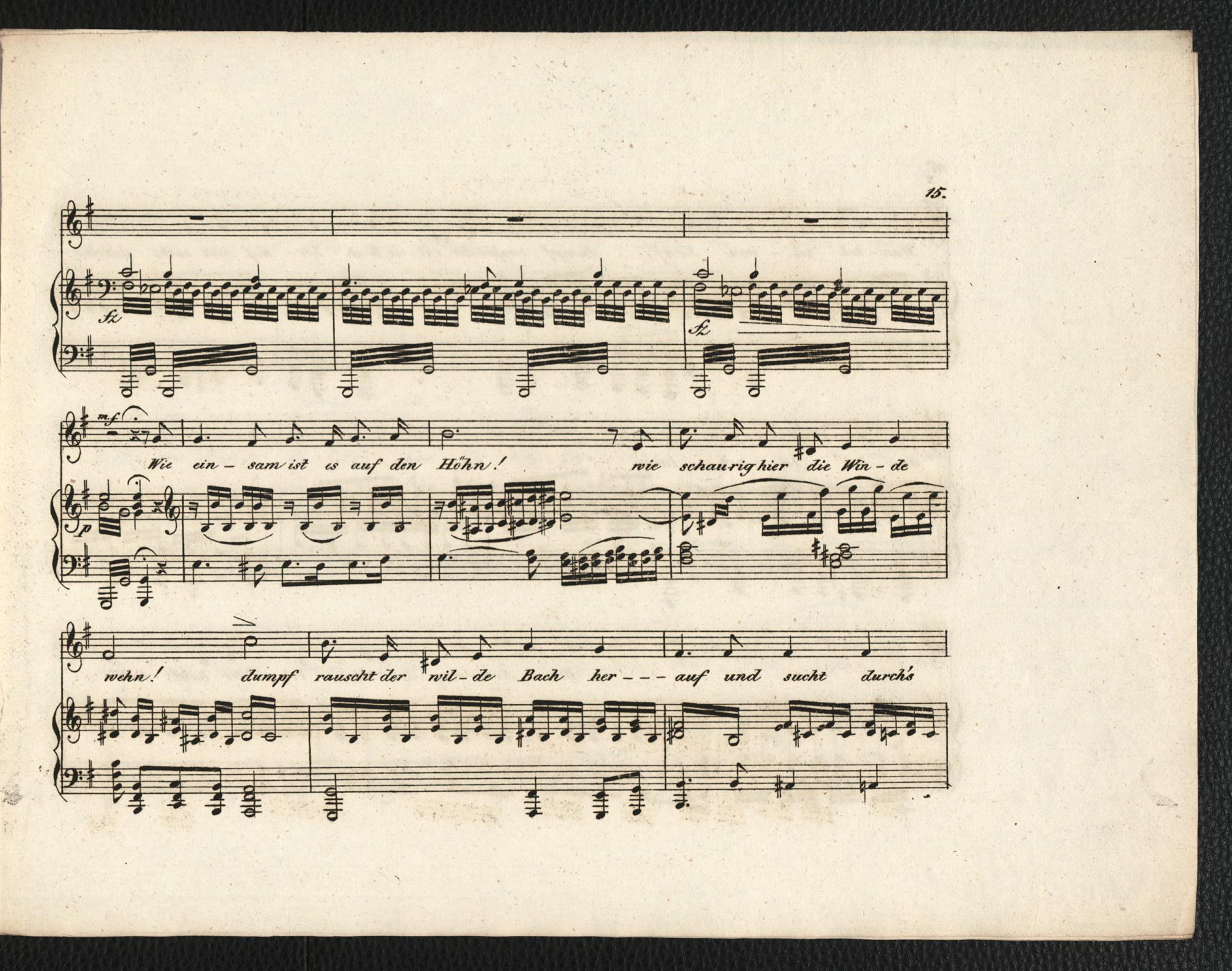 Drei Gedichte: "Erloschene Liebe", "Todtenhemdchen" und "Elfengesang" : für eine Singstimme und Klavier ; op. 21 / In Musik gesetzt von Benedikt Randhartinger. (Zedlitz, Bauernfeld und Schulze). E.H. Franz von Österreich gewidmet