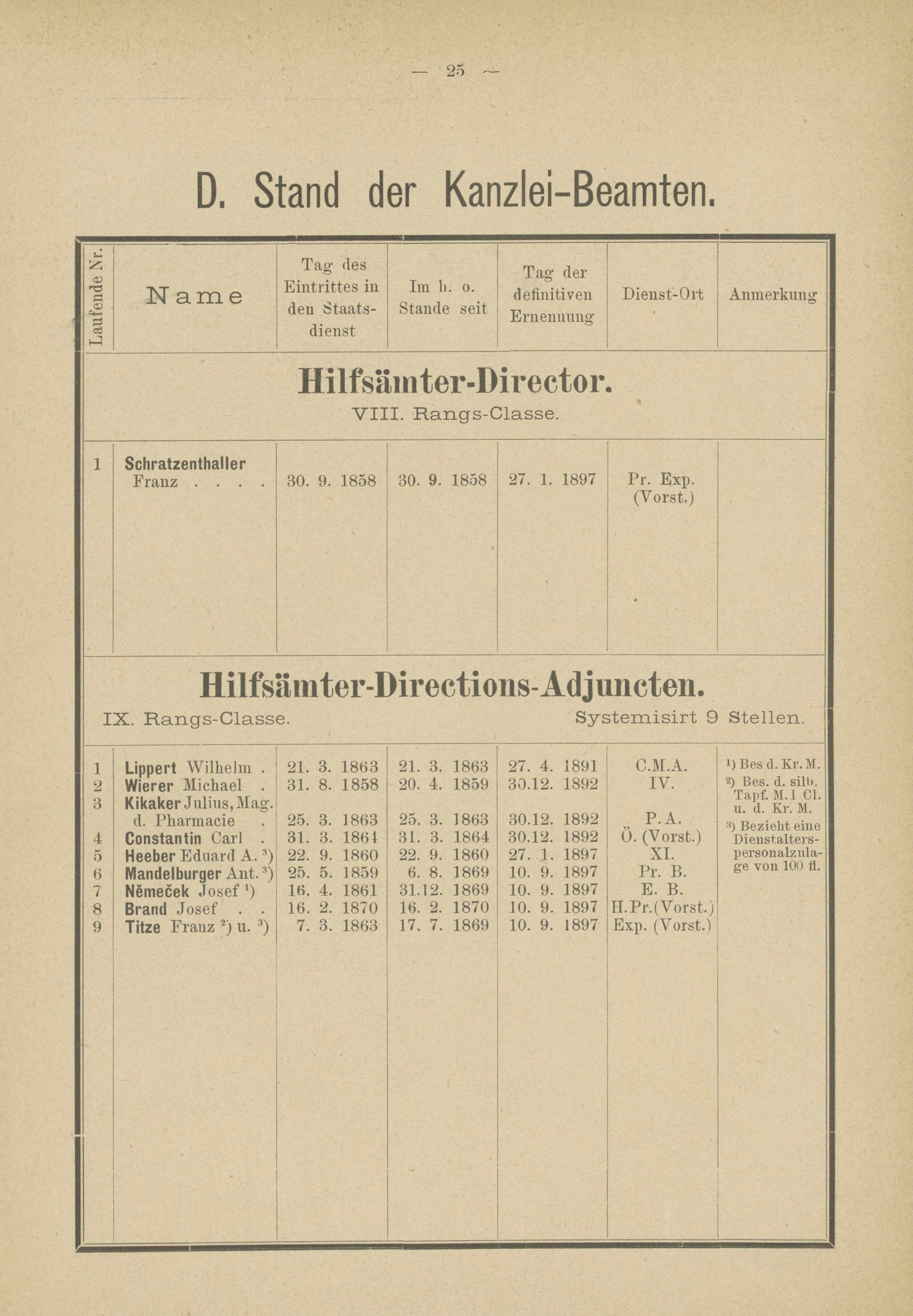 Personalstand der k.k. Polizei-Direction Wien vom 1. April 1898 : mit zugehörigen Uebersichten