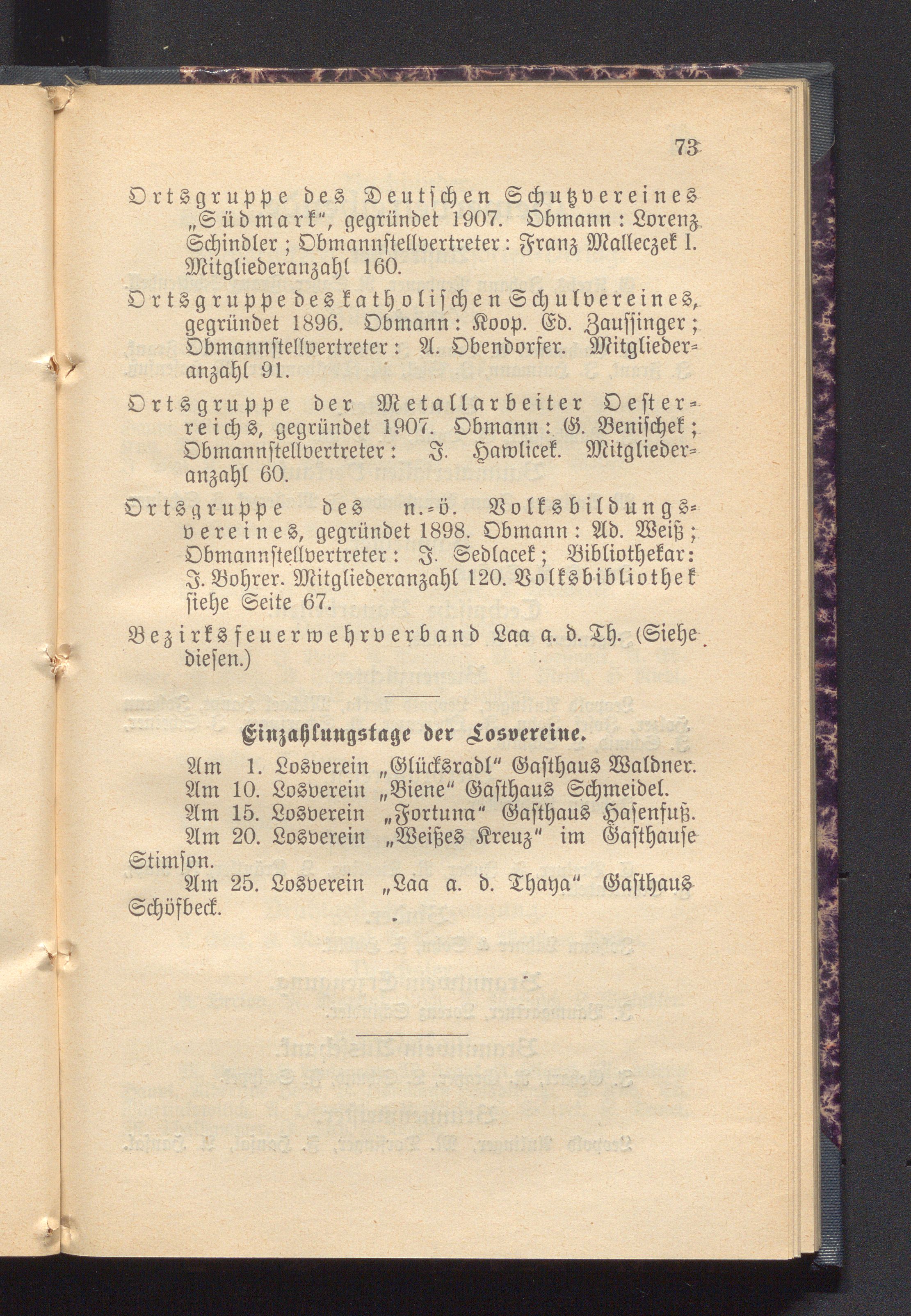 Illustrierter Führer durch Laa a. d. Thaya, Niederösterreich und vollständiges Adreßbuch der l.f. Stadt Laa a. d. Th. mit einem Verzeichnisse sämtlicher in Laa ansässigen Personen / bearb. und hrsg. von Alfred Schmeidel