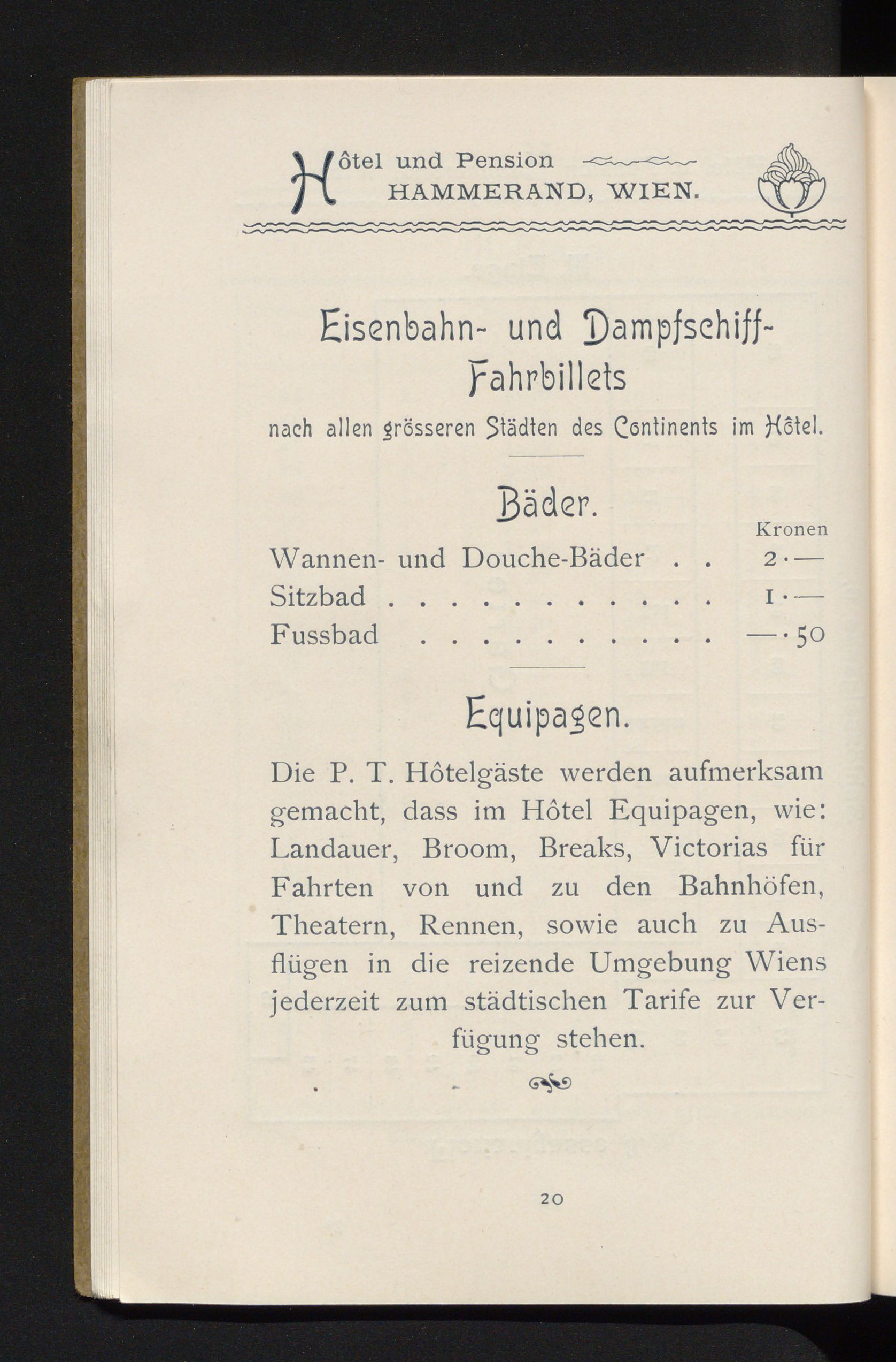 Hôtel und Pension Hammerand : Wien VIII./1, Florianigasse Nr. 8, Schlösselgasse Nr. 6 u. 8 / [Besitzer: Erh. Hammerand]