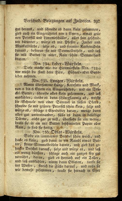 Die Wiener-Köchinn wie sie seyn soll : oder mein eigenes durch dreyßig Jahre geprüftes Kochbuch in sechs Abtheilungen ; Enthält Tausend dreyhundert Speisen für Fleisch- und Fasttage, nebst allen Gattungen Backereyen, Blamascheen, Sulzen, Eingesottenen und Gefrornen ; auch einem Anhang von Speißzetteln des Mittags und Nachts, nach dem neuesten Geschmack / Verfaßt von Theresia Ballauf, vereheligten Muck, gewesenen Freyherrlich Arnstein'sche Köchinn