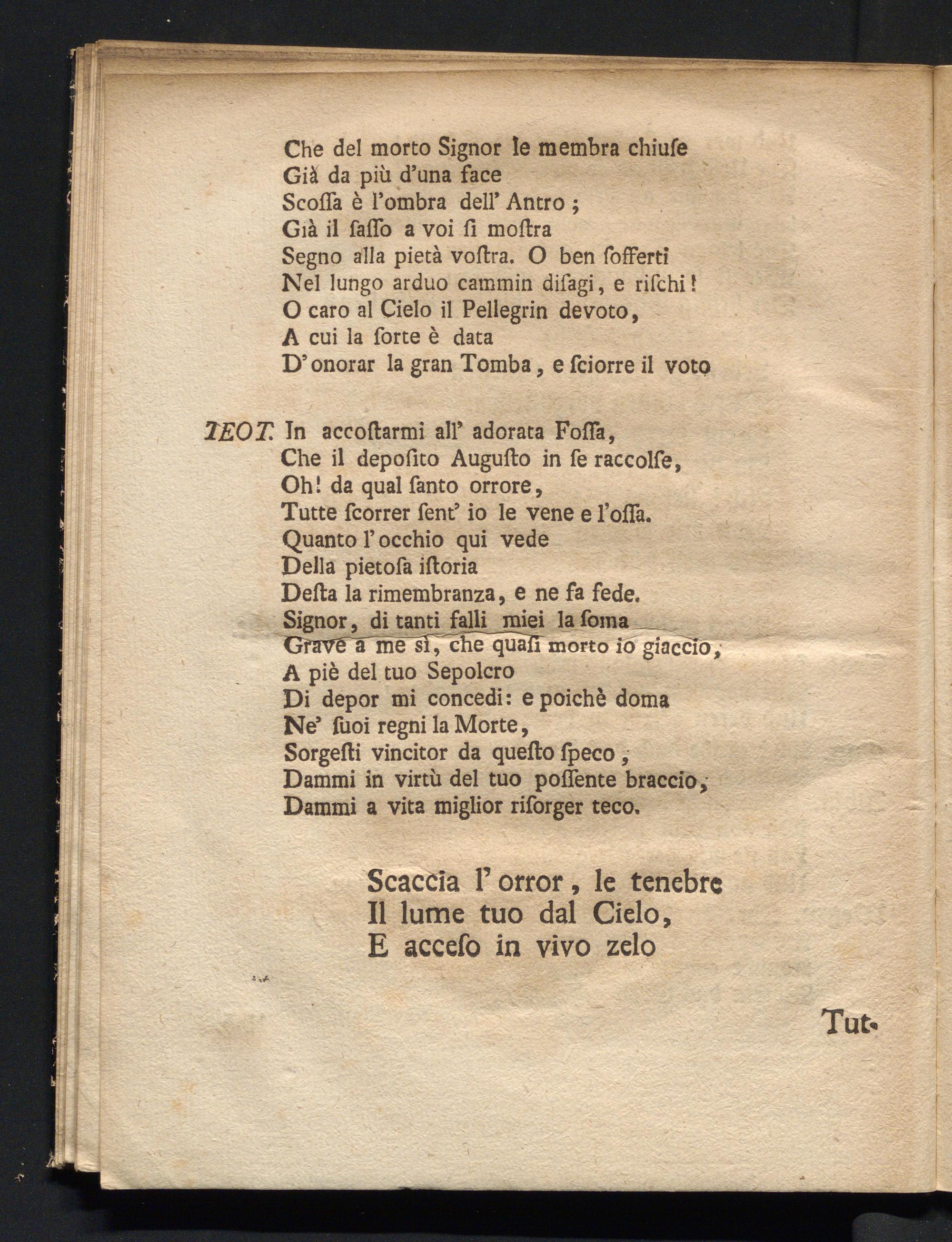 I Pellegrini Al Sepolcro Di Nostro Redemtore : Musica Sacra Da Cantarsi Nella Chiesa Dei Padri Franciscani In Vienna Il Venerdi Santo Del Anno 1754 ; Per Devotione d'alcuni Benefattori / La Musica è composta del Signore Hasse detto il Sassone