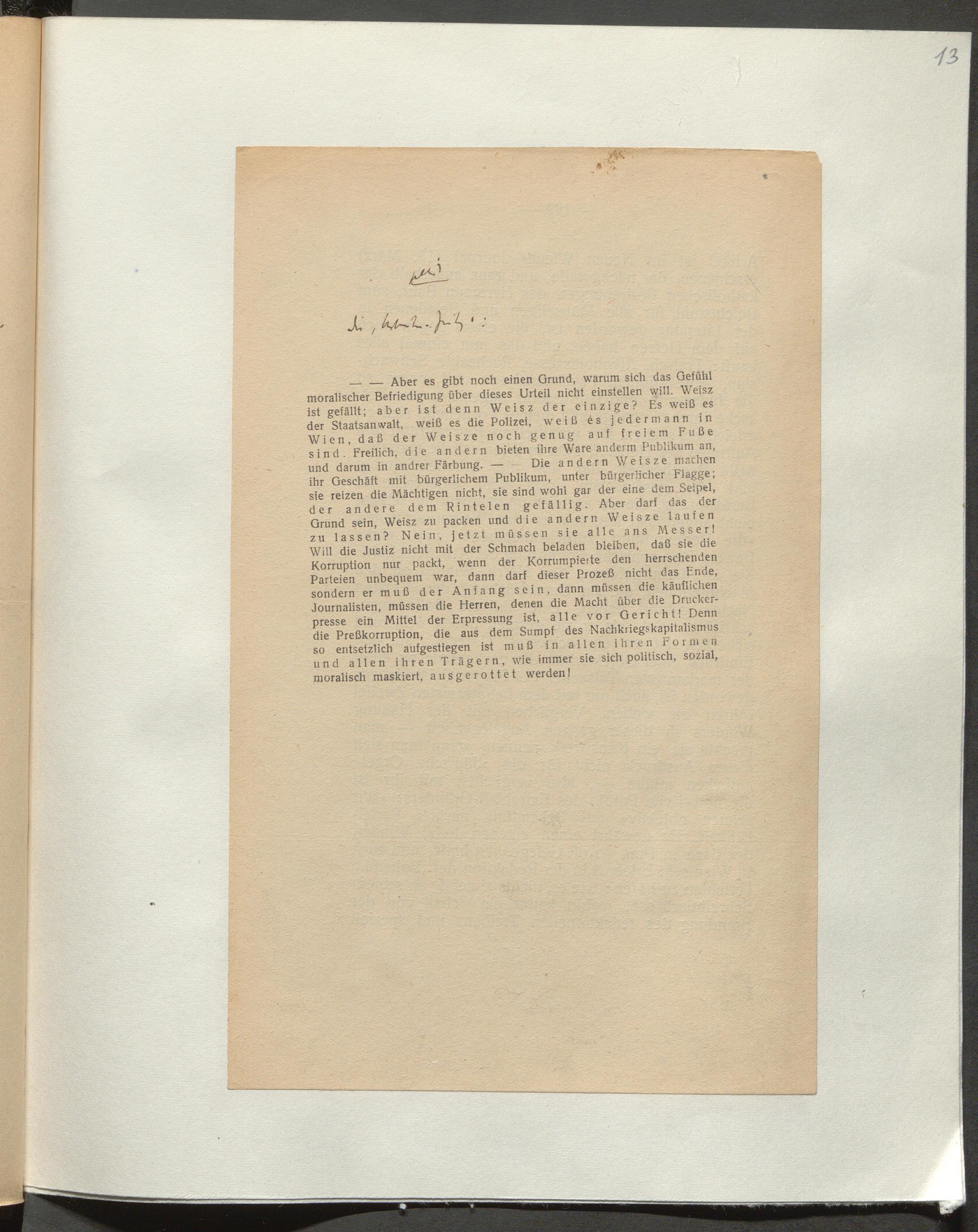 Druckfahnen von Karl Kraus zur Fackel Nr. 726/729