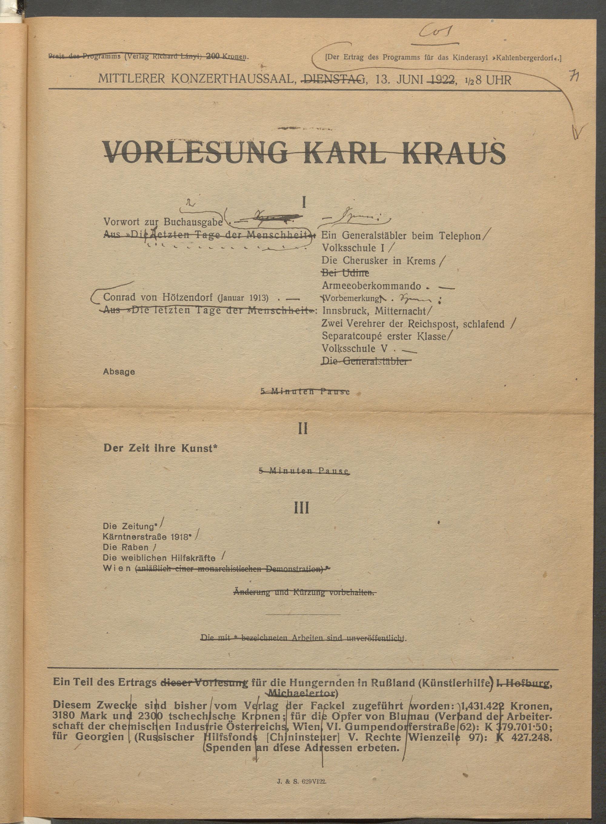 Manuskripte von Karl Kraus zur Fackel Nr. 595/600
