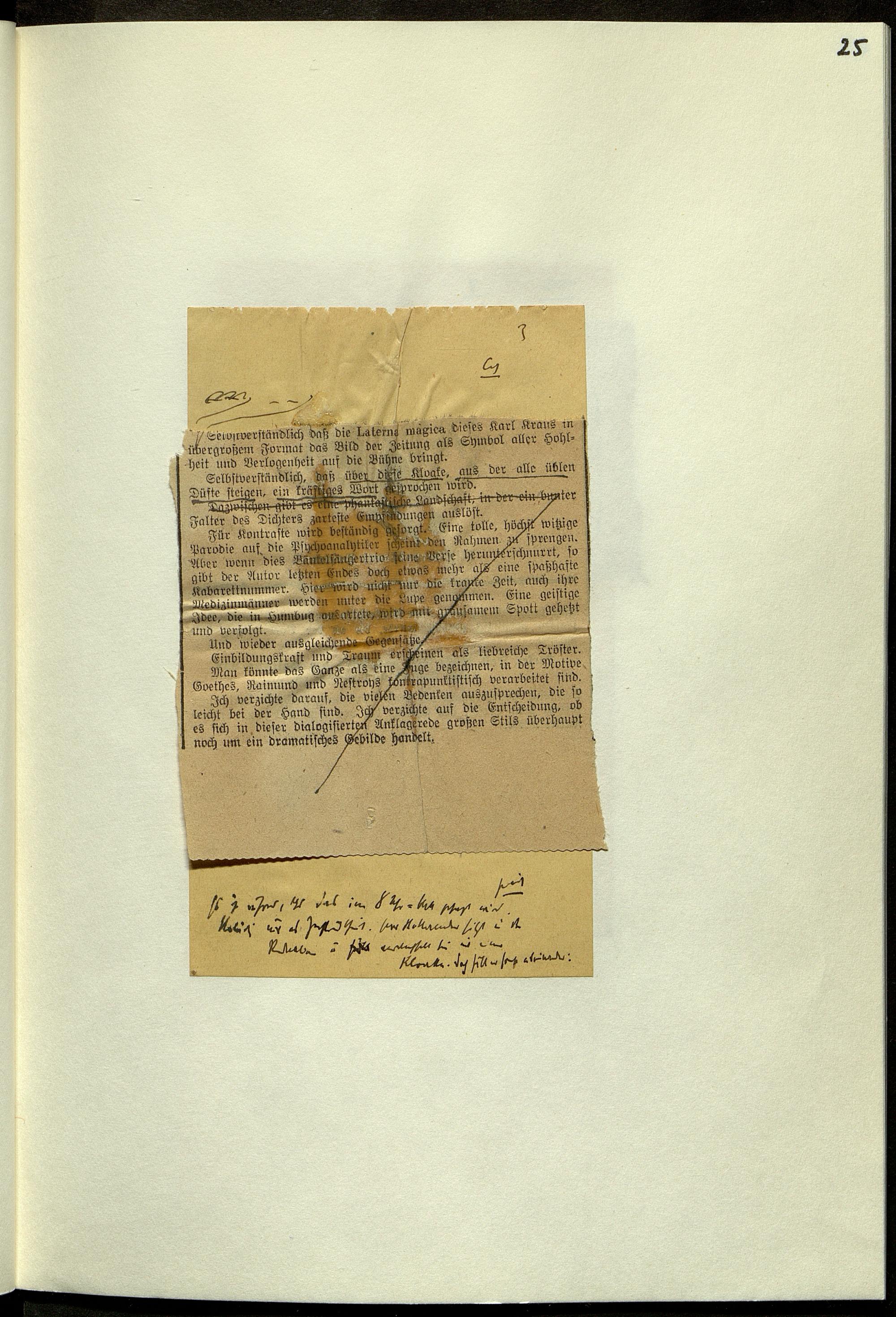 Manuskripte und Zeitungsausschnitte von Karl Kraus zur Fackel Nr. 649/656