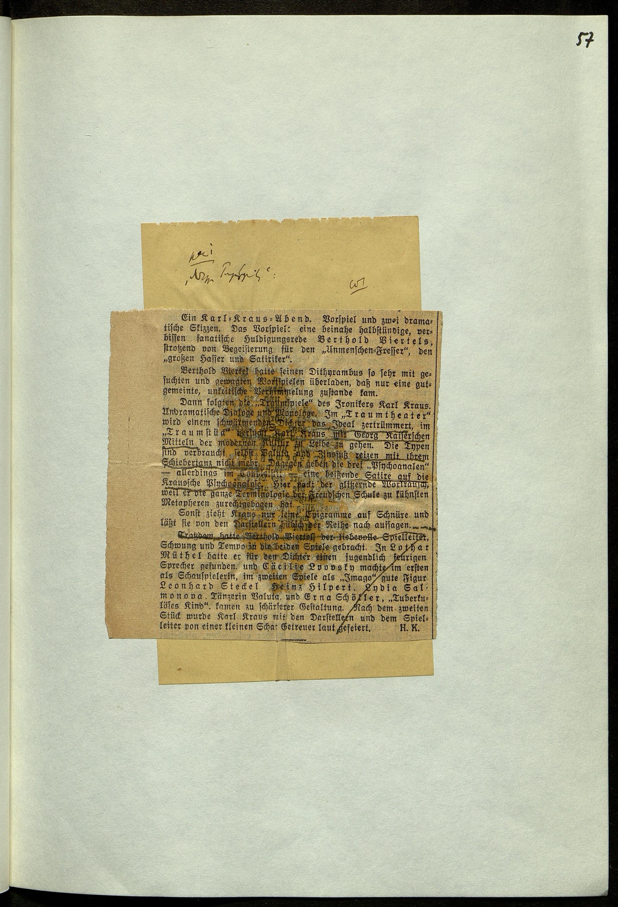 Manuskripte und Zeitungsausschnitte von Karl Kraus zur Fackel Nr. 649/656