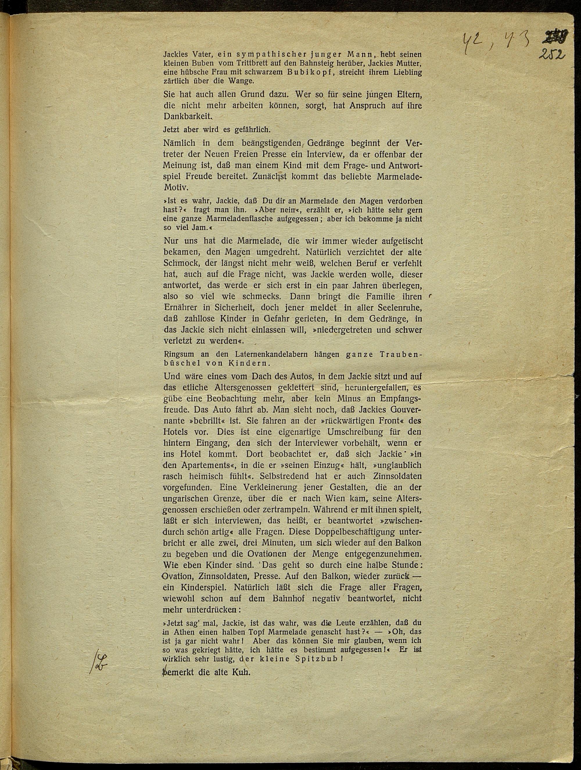 Druckfahnen von Karl Kraus zur Fackel Nr. 668/675