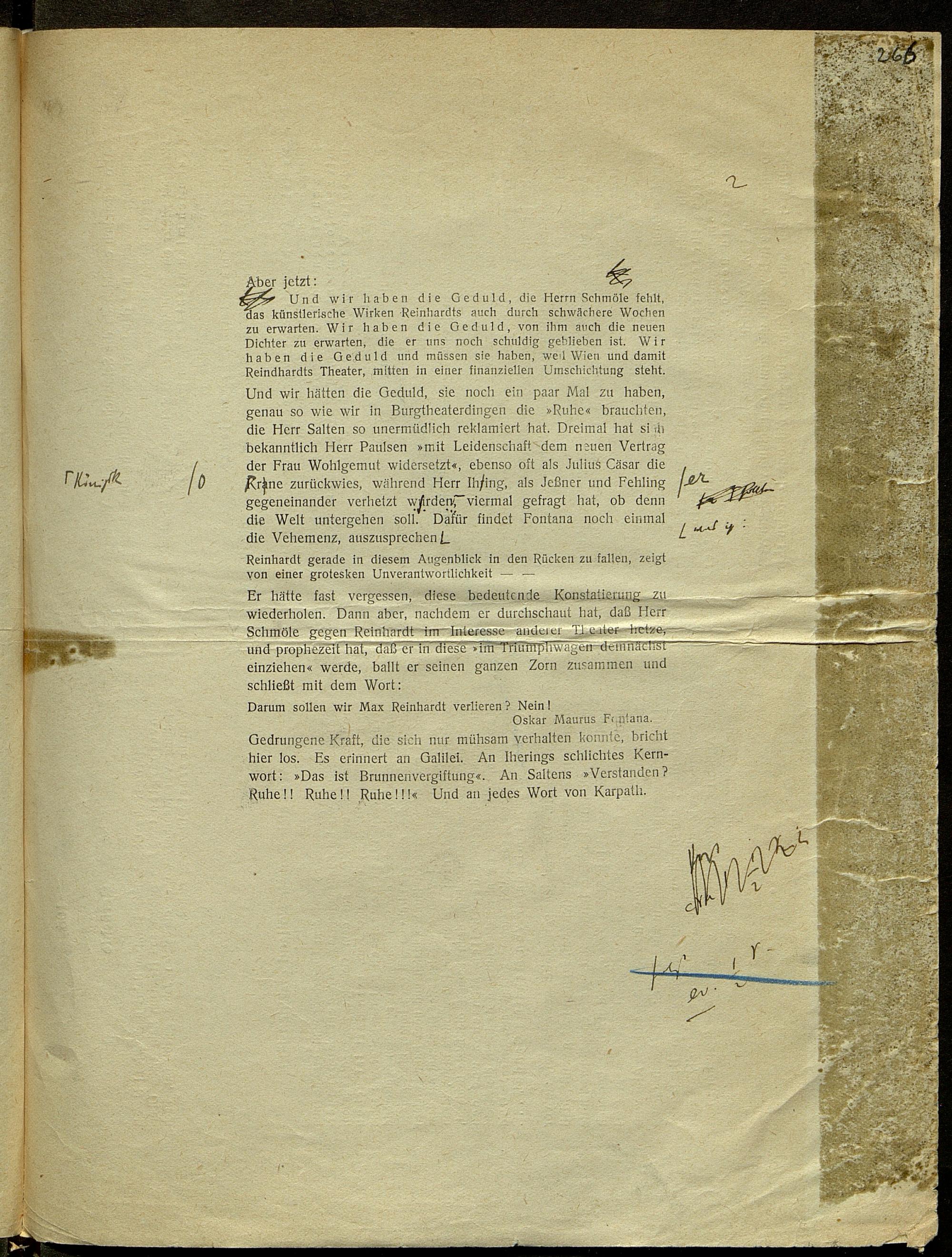 Druckfahnen von Karl Kraus zur Fackel Nr. 668/675