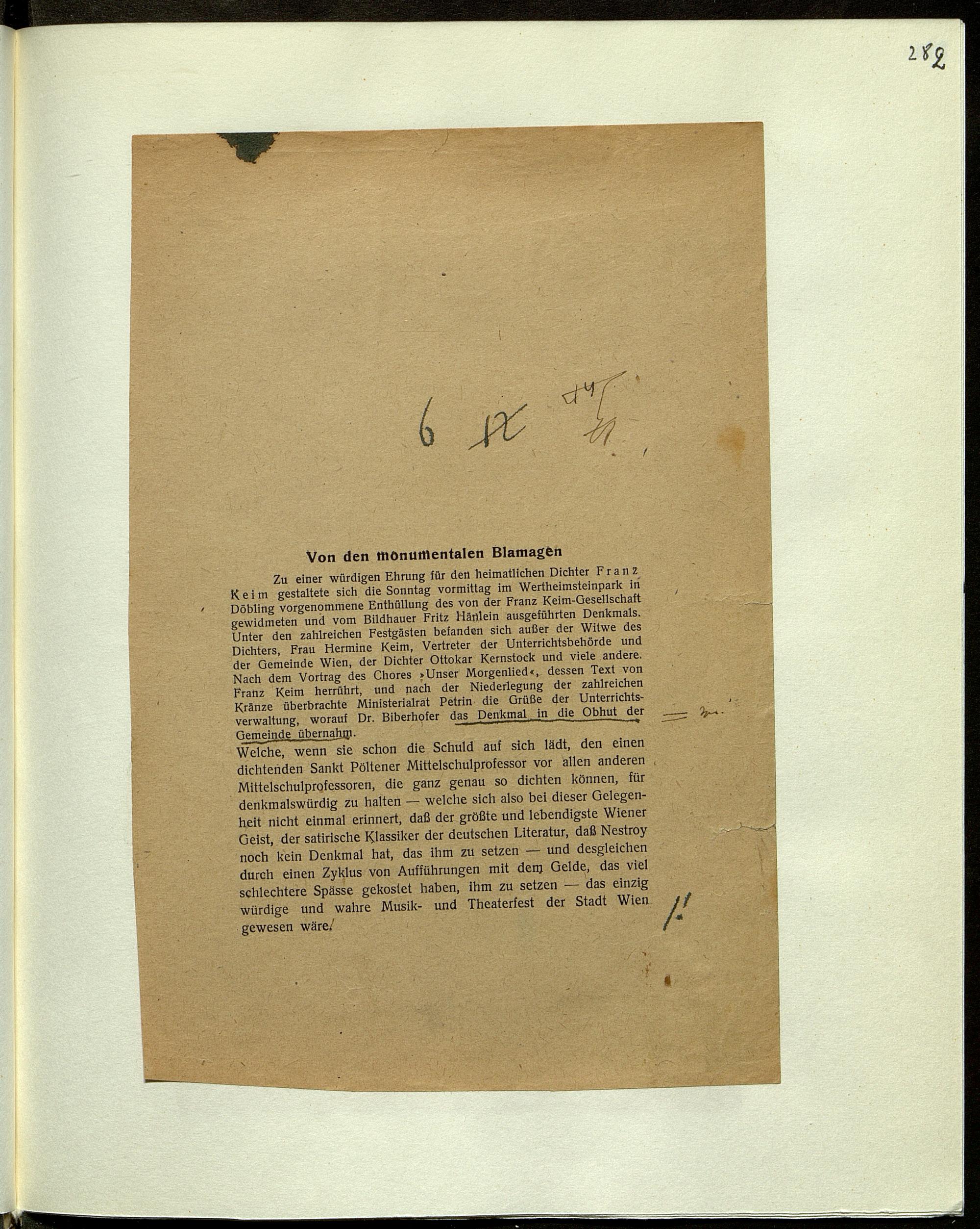 Druckfahnen von Karl Kraus zur Fackel Nr. 668/675