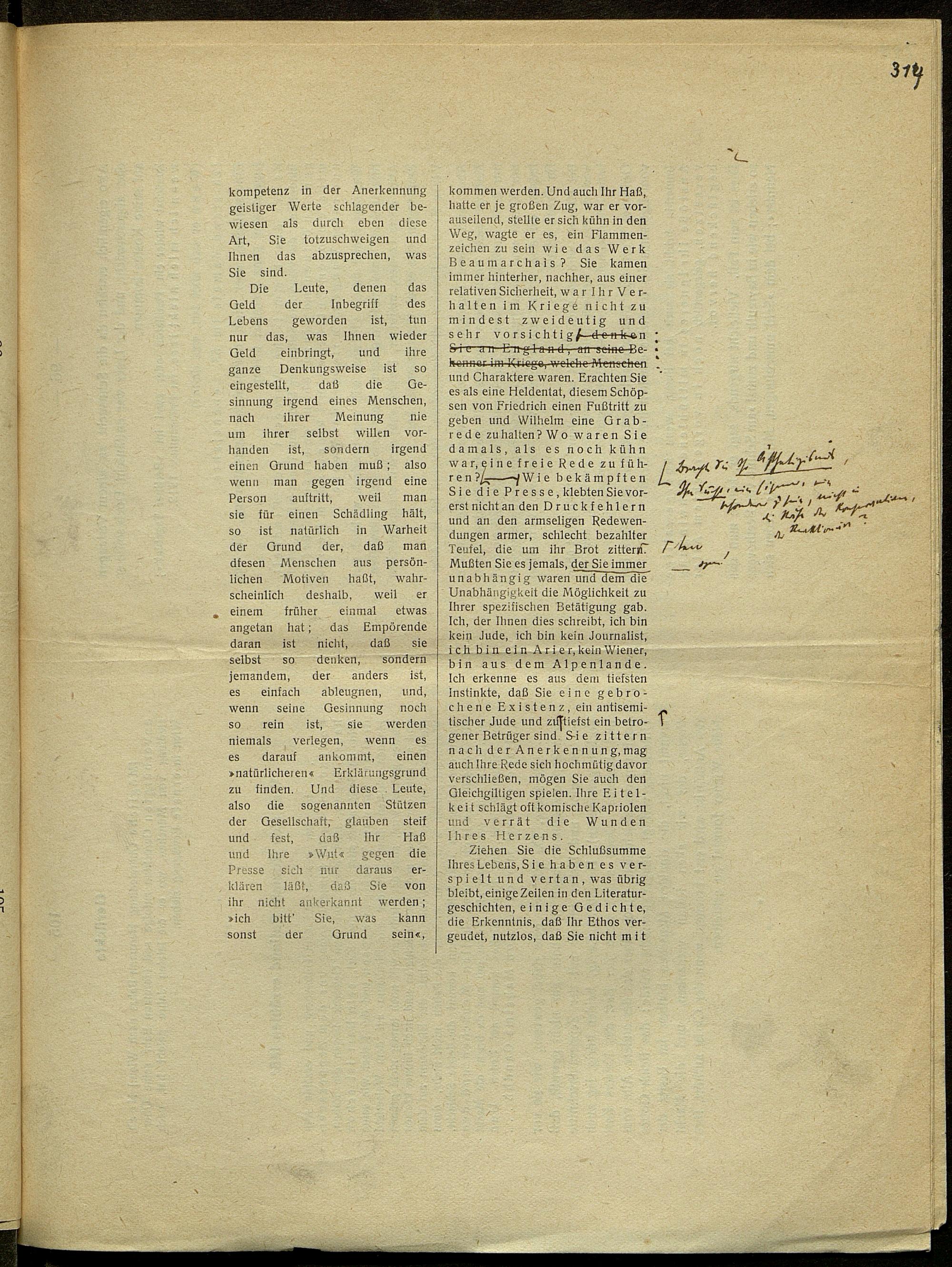 Druckfahnen von Karl Kraus zur Fackel Nr. 668/675