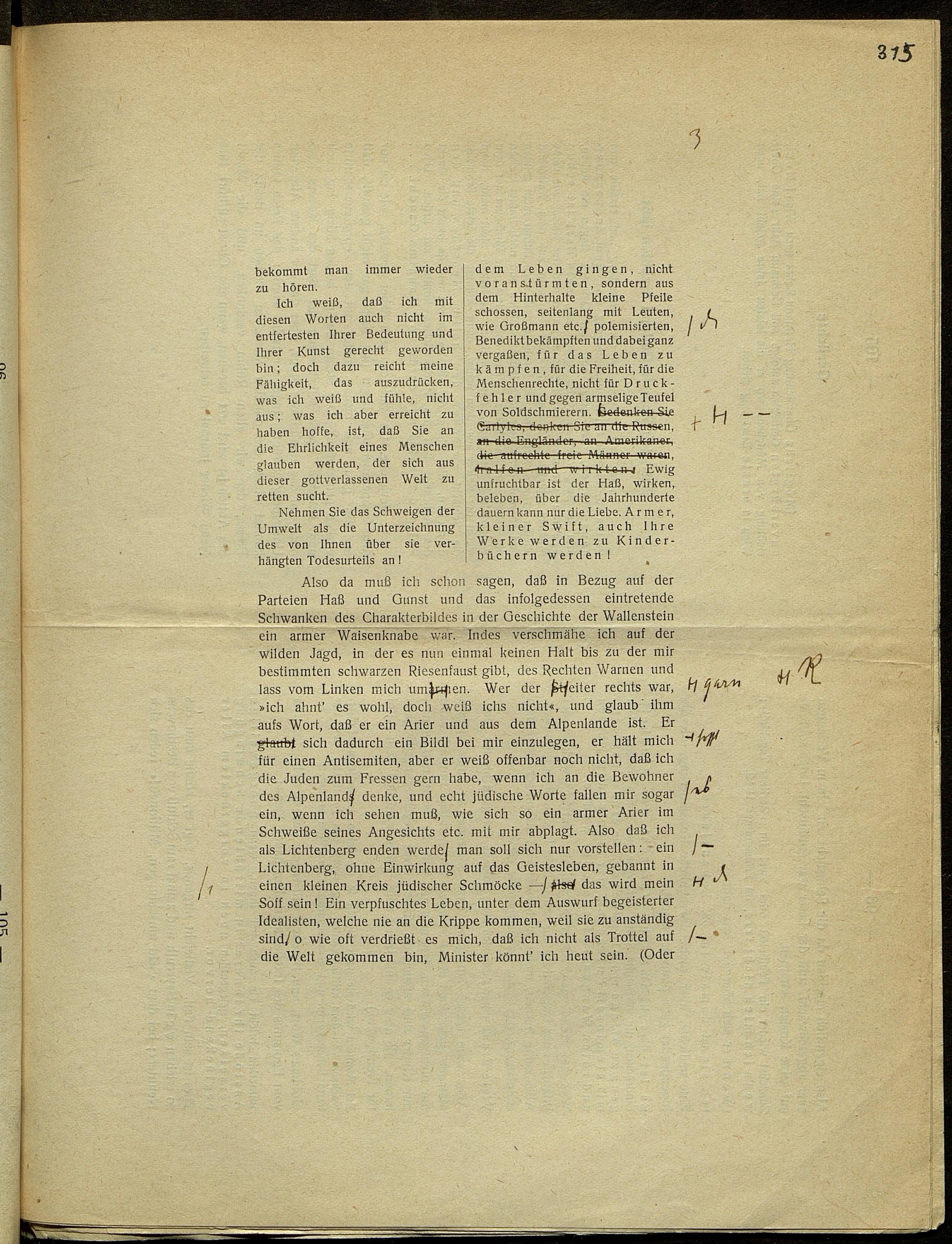 Druckfahnen von Karl Kraus zur Fackel Nr. 668/675