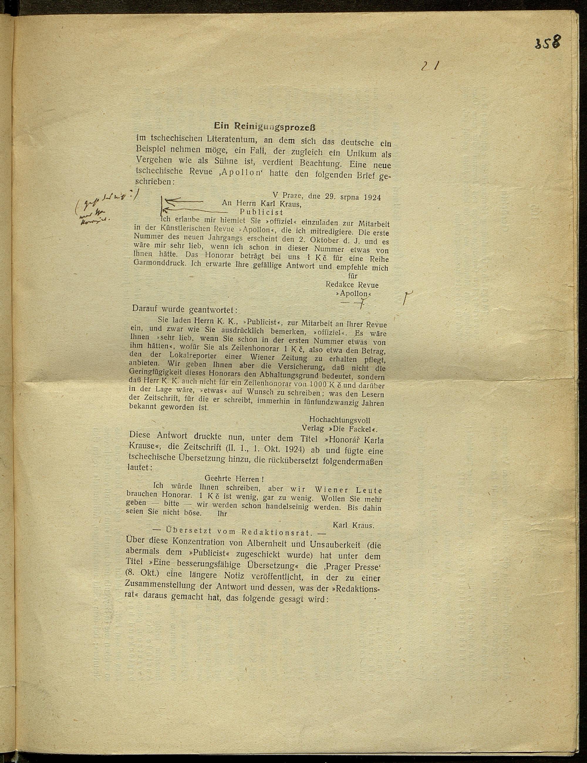 Druckfahnen von Karl Kraus zur Fackel Nr. 668/675