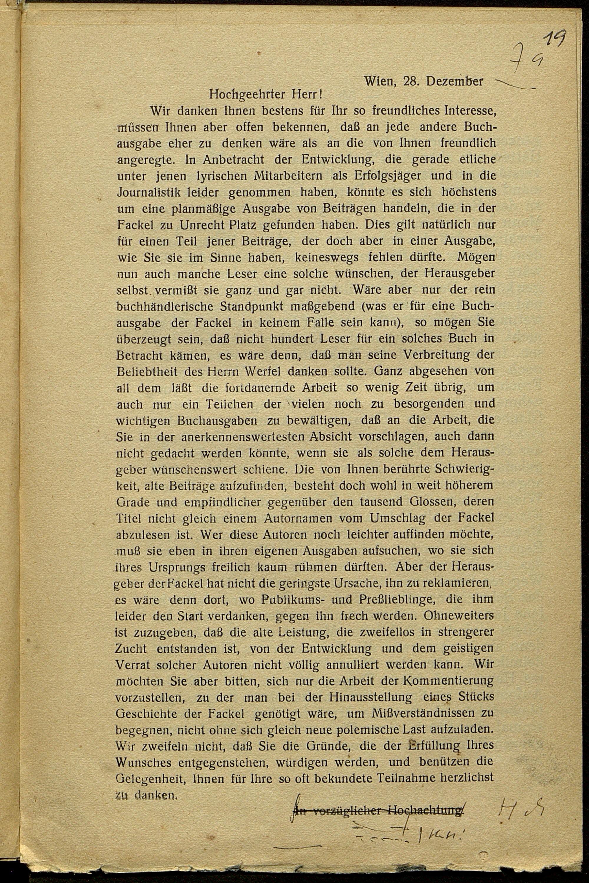 Druckfahnen von Karl Kraus zur Fackel Nr. 751/756