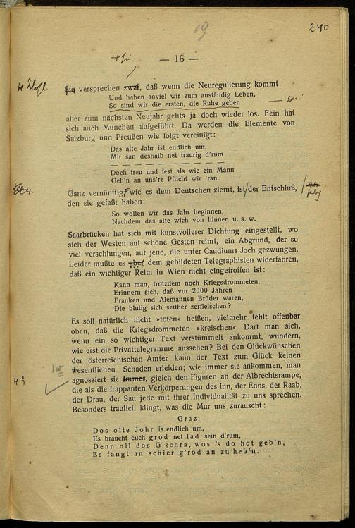 Druckfahnen von Karl Kraus zur Fackel Nr. 751/756