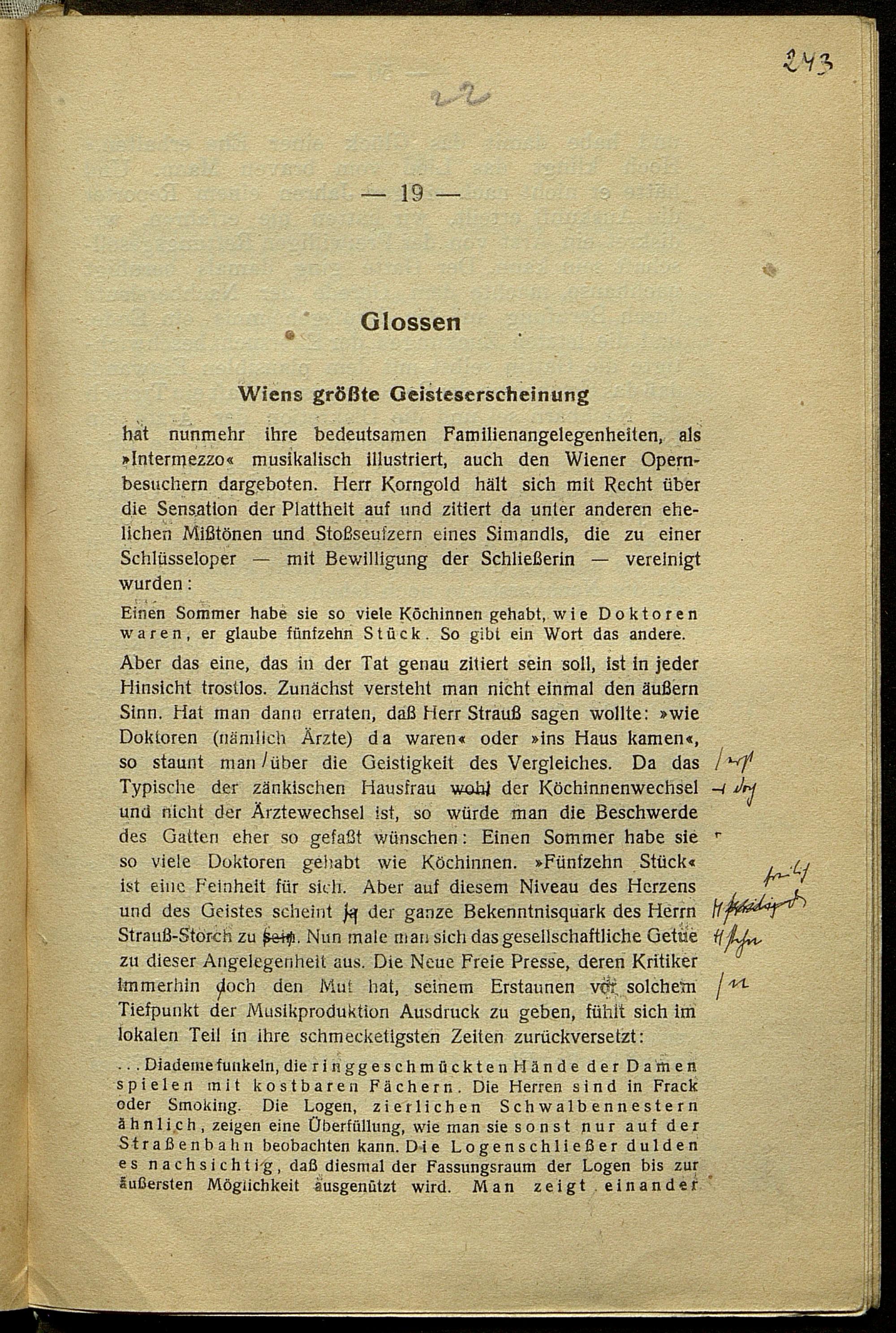 Druckfahnen von Karl Kraus zur Fackel Nr. 751/756