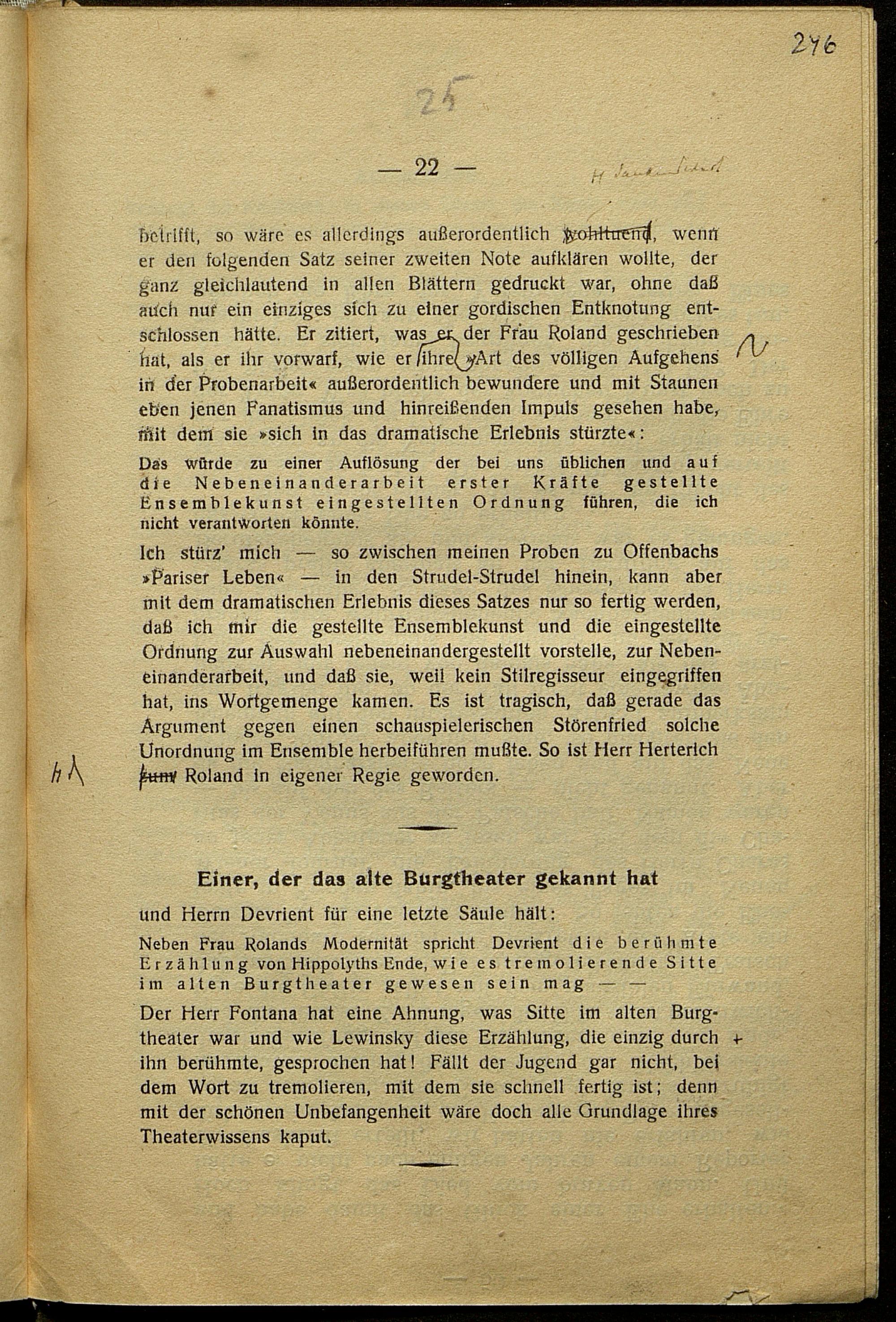 Druckfahnen von Karl Kraus zur Fackel Nr. 751/756