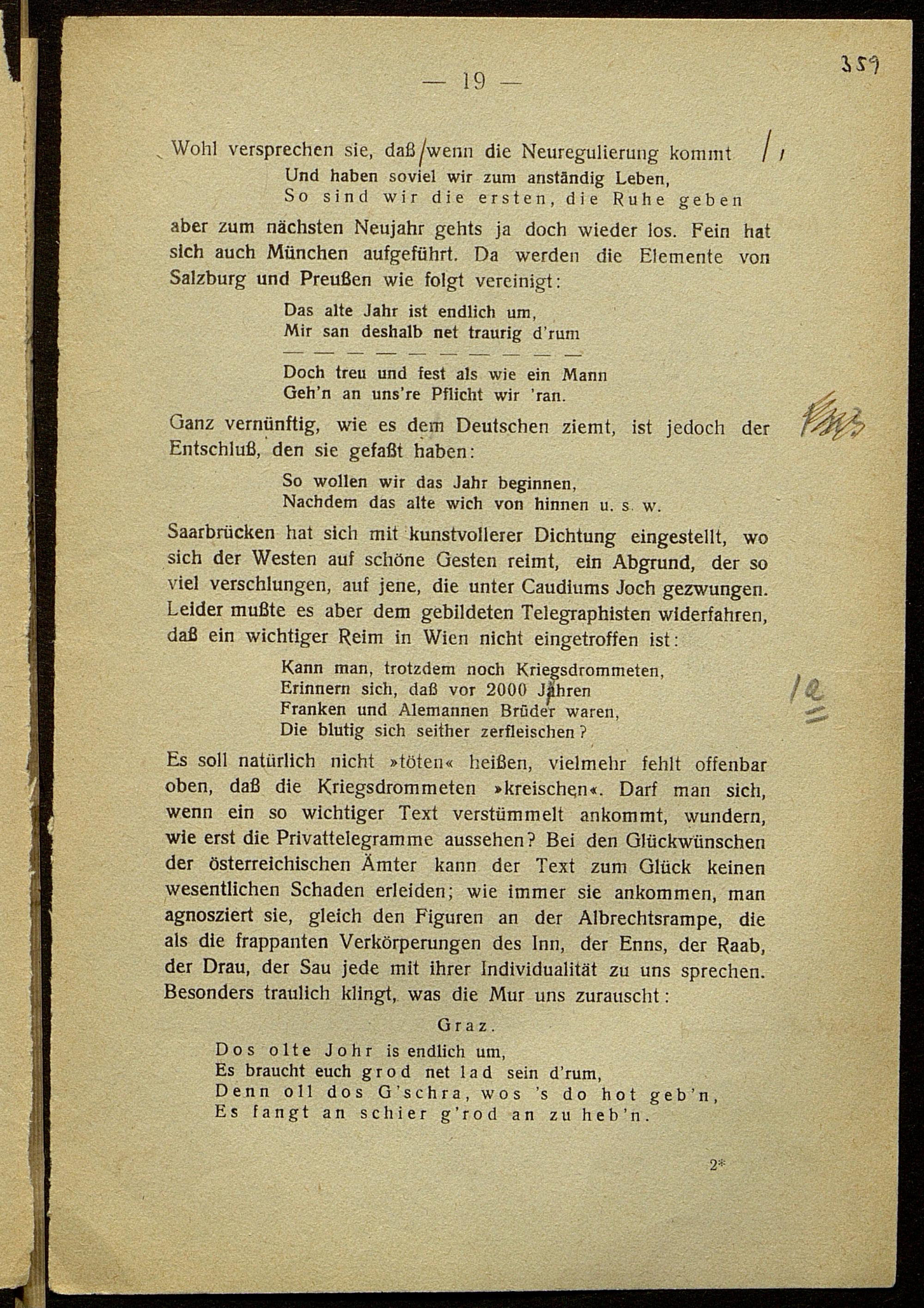 Druckfahnen von Karl Kraus zur Fackel Nr. 751/756