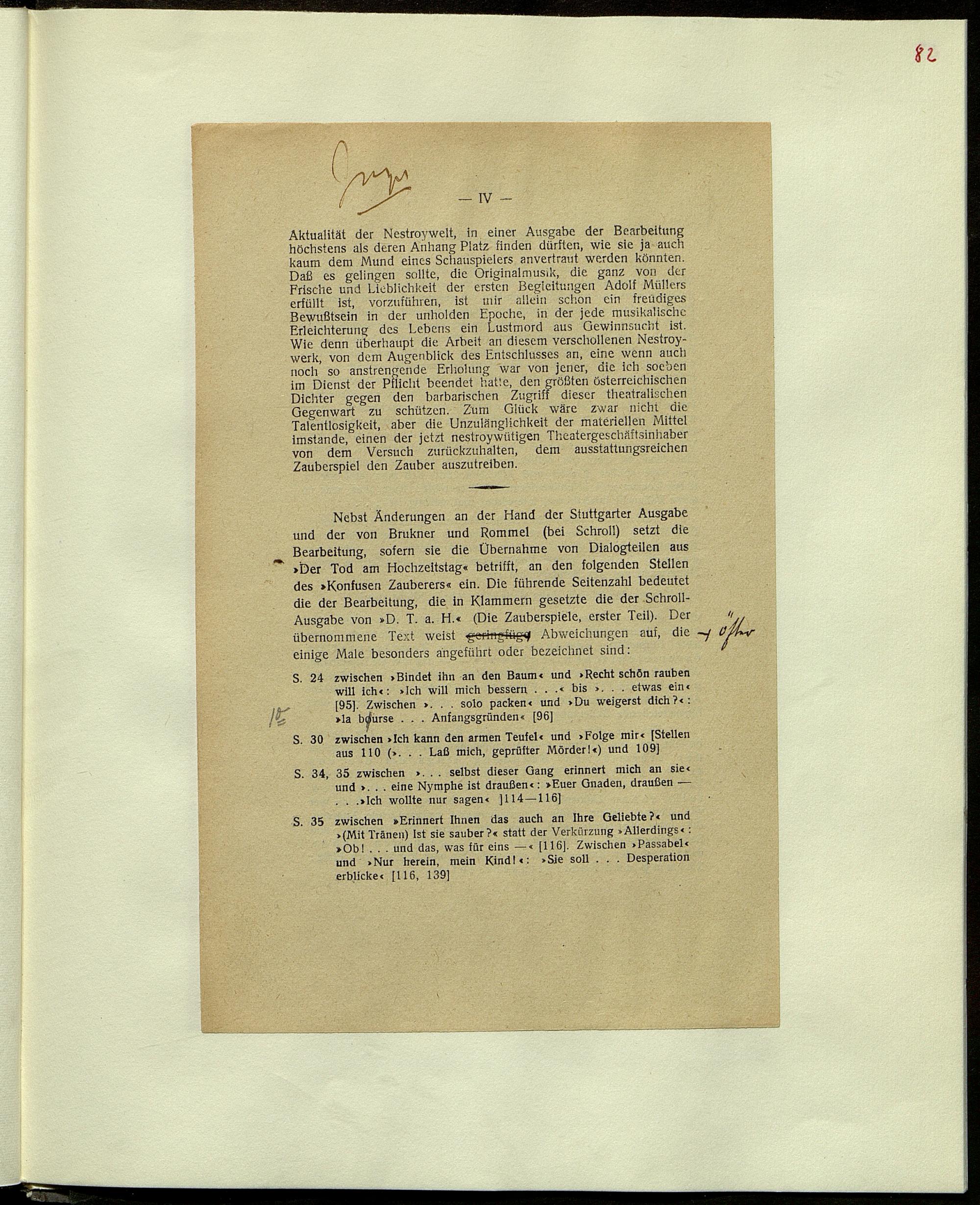 Manuskripte, Korrekturbögen, Titelblatt und Nachwort zur Bearbeitung des Zauberspiels von J. Nestroa "Der konfuse Zauberer" oder "Treue und Flatterhaftigkeit"