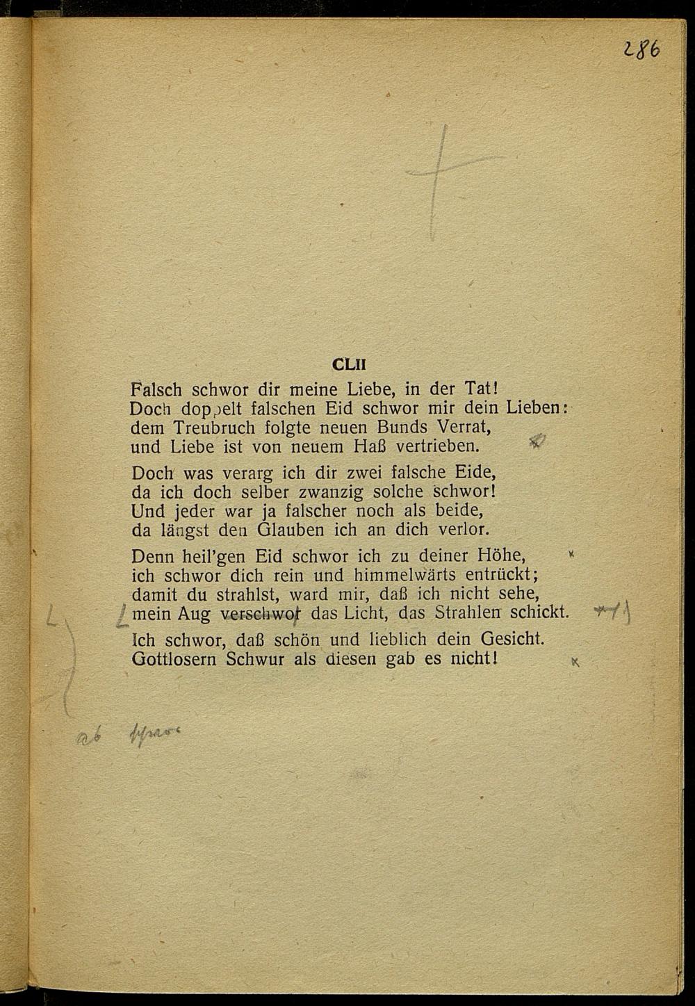 1. Korrektur zur Nachdichtung von "Shakespeares Sonette"