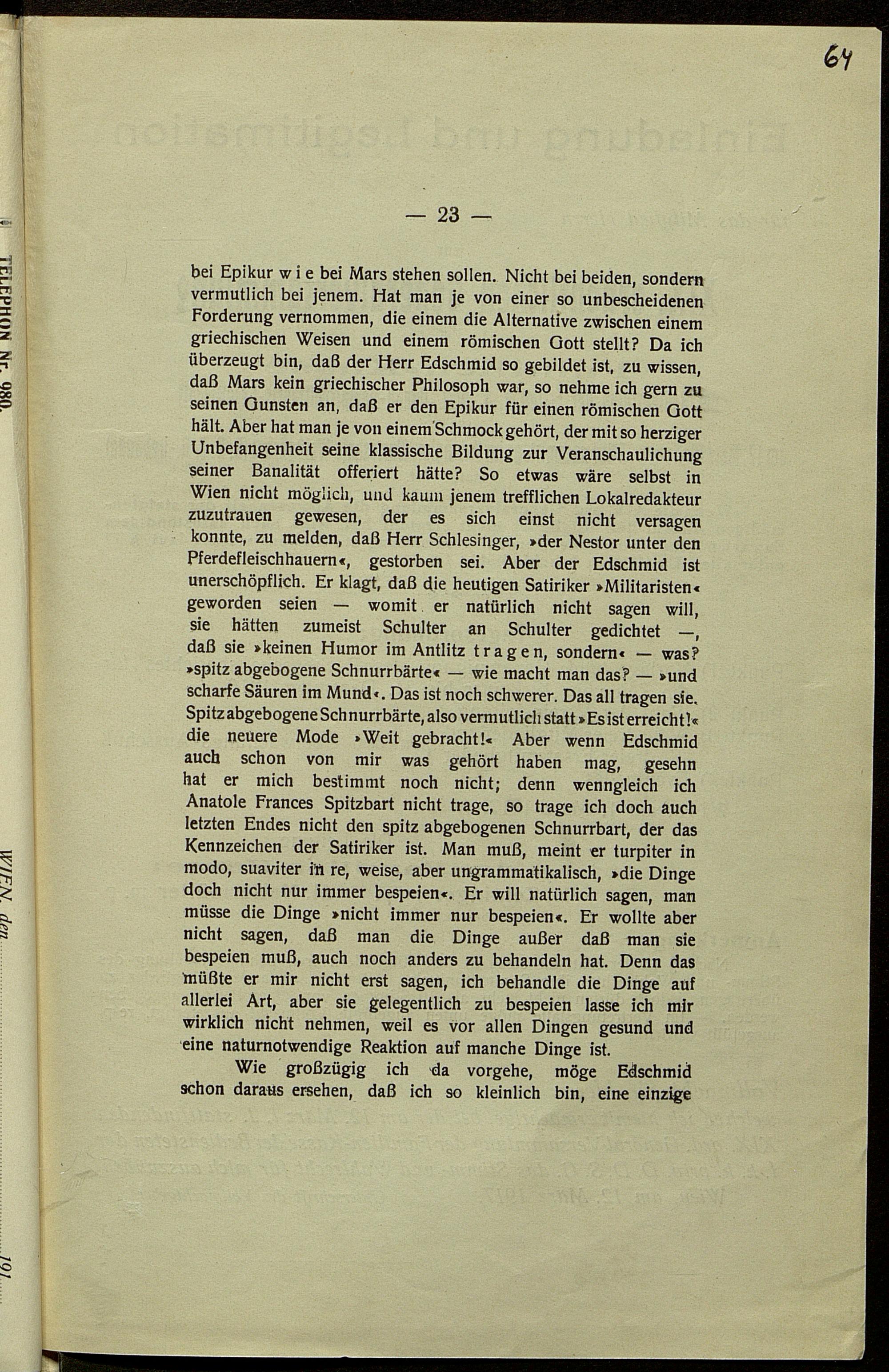 Druckfahnen nach dem Umbruch mit 1.-4. Redaktion von Karl Kraus zur Fackel Nr. 557/560