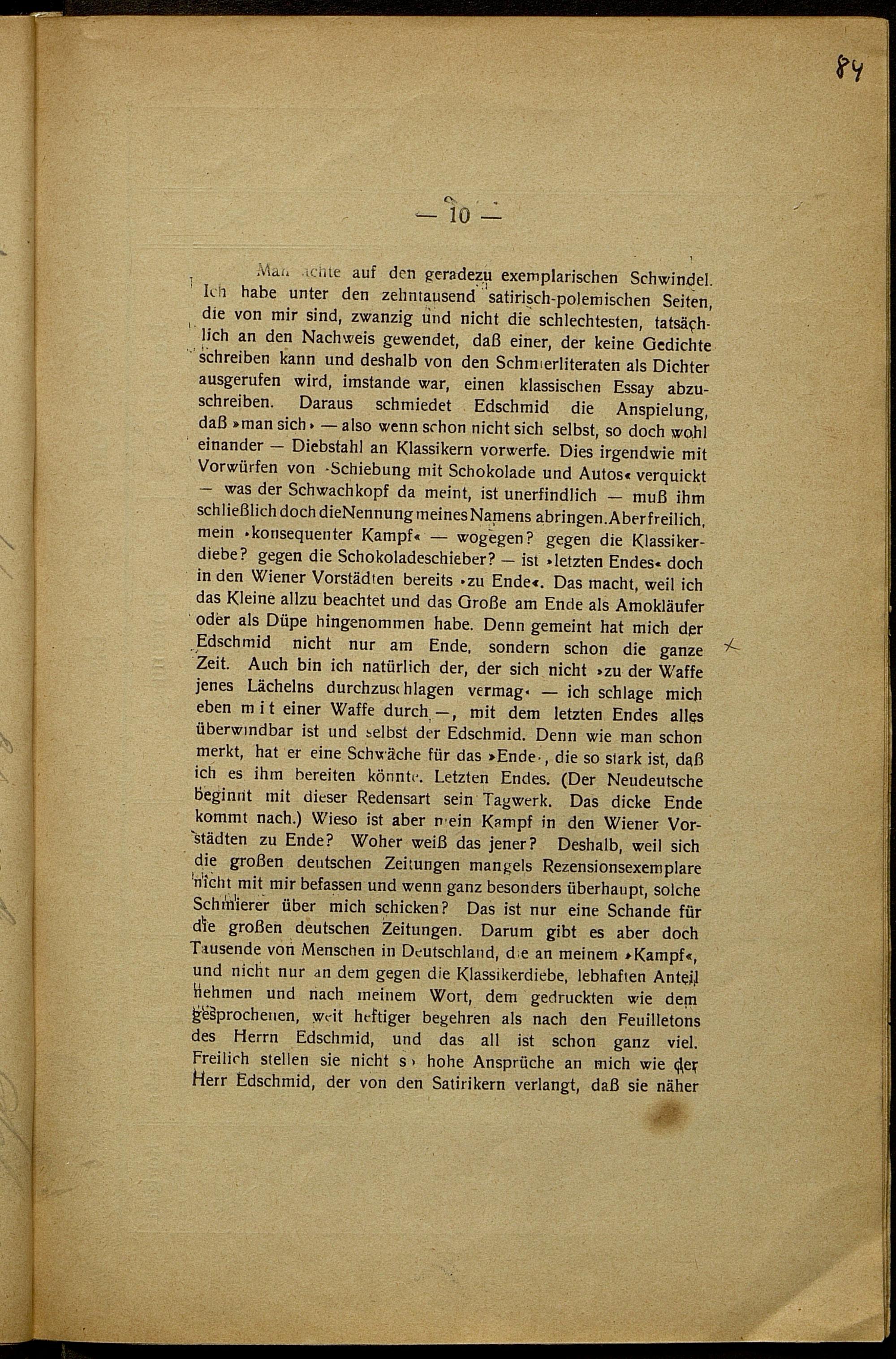 Druckfahnen nach dem Umbruch mit 1.-4. Redaktion von Karl Kraus zur Fackel Nr. 557/560
