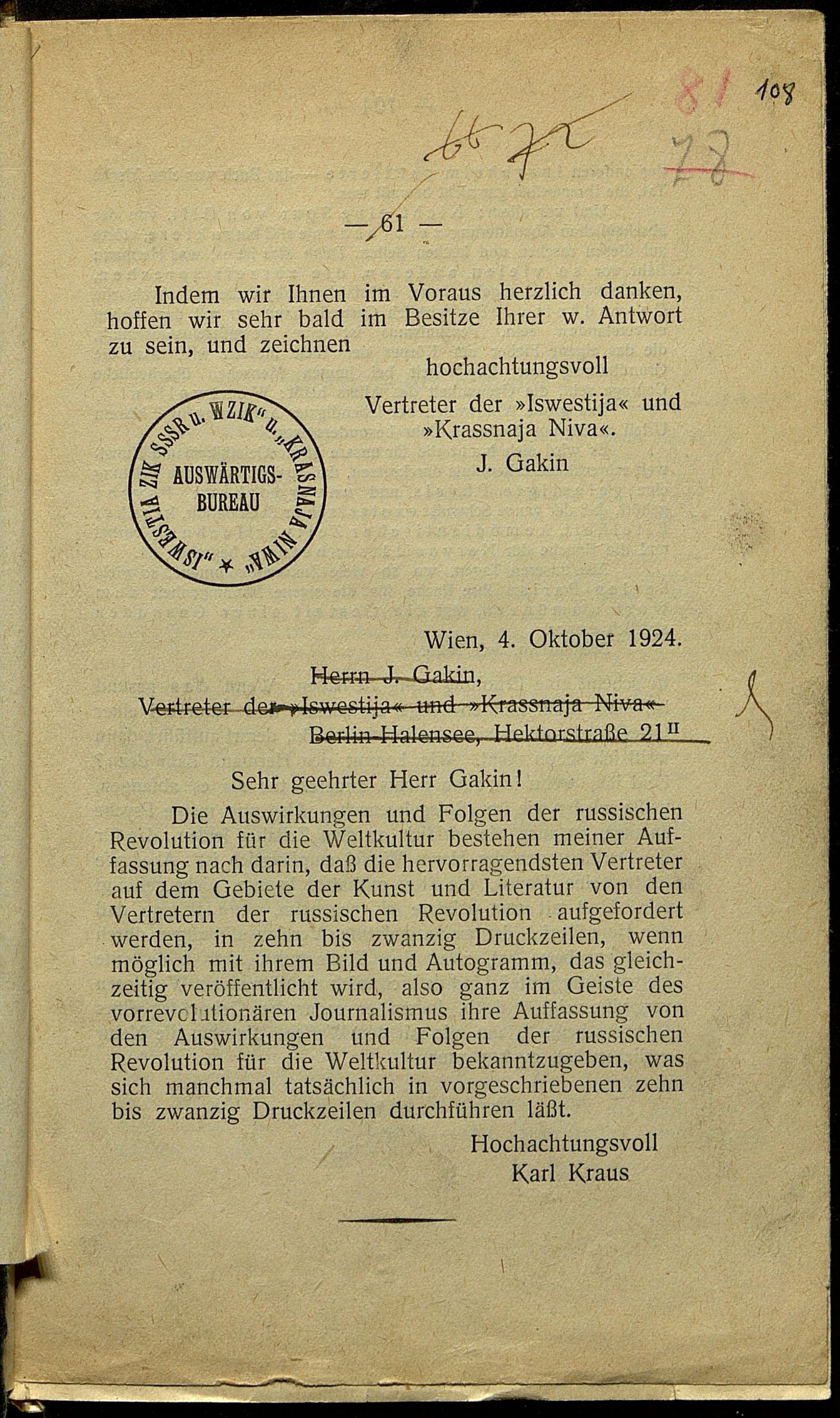 Fahnen nach dem Umbruch von Karl Kraus zur Fackel Nr. 668/675