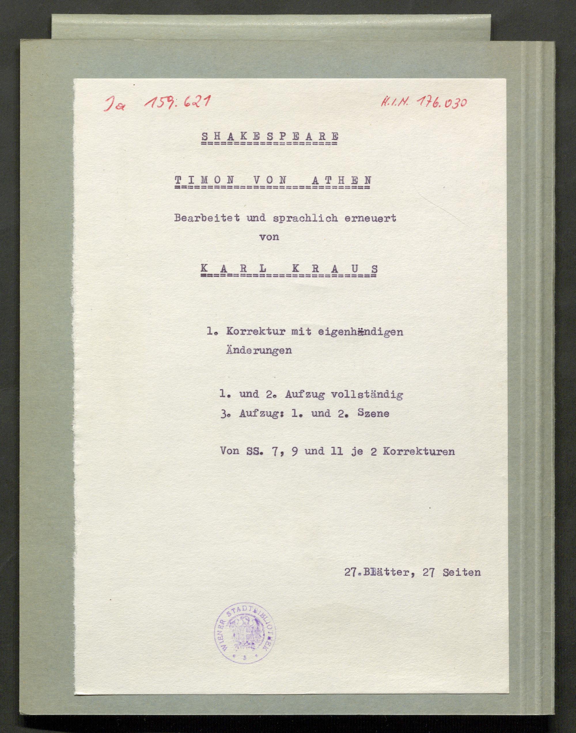 Erste Korrektur der sprachlichen Neubearbeitung von William Shakespeares "Timon von Athen"