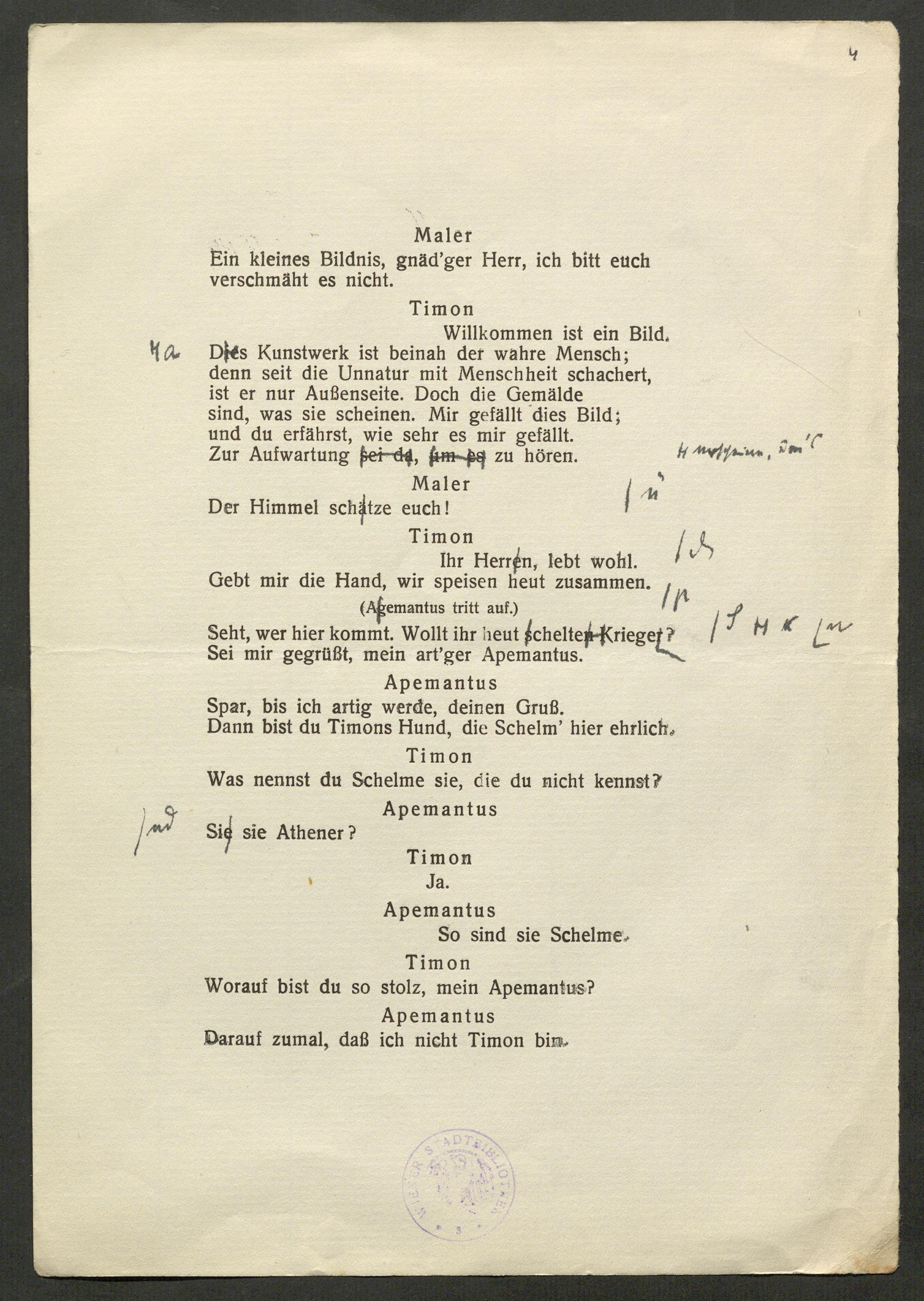 Erste Korrektur der sprachlichen Neubearbeitung von William Shakespeares "Timon von Athen"