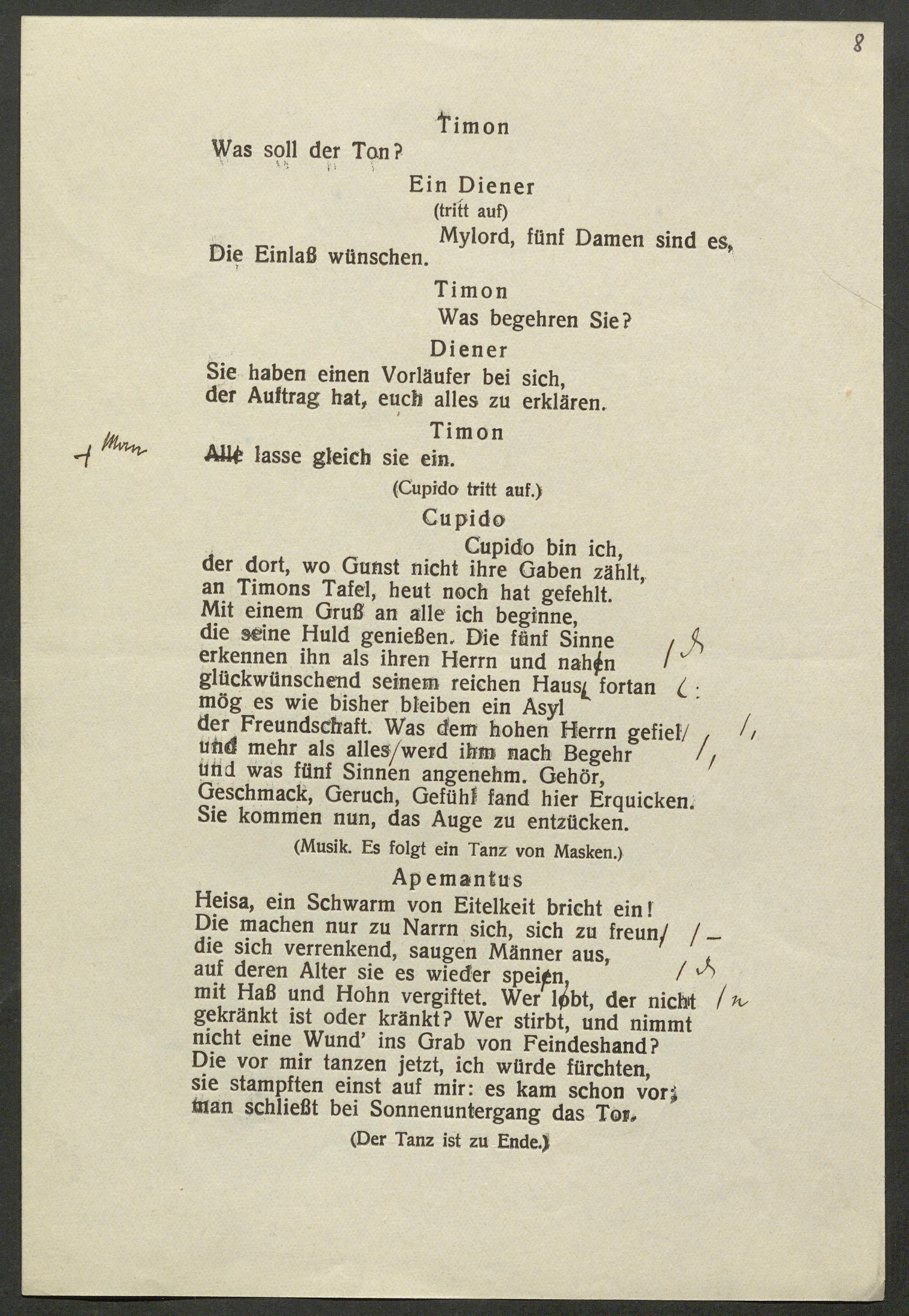 Erste Korrektur der sprachlichen Neubearbeitung von William Shakespeares "Timon von Athen"