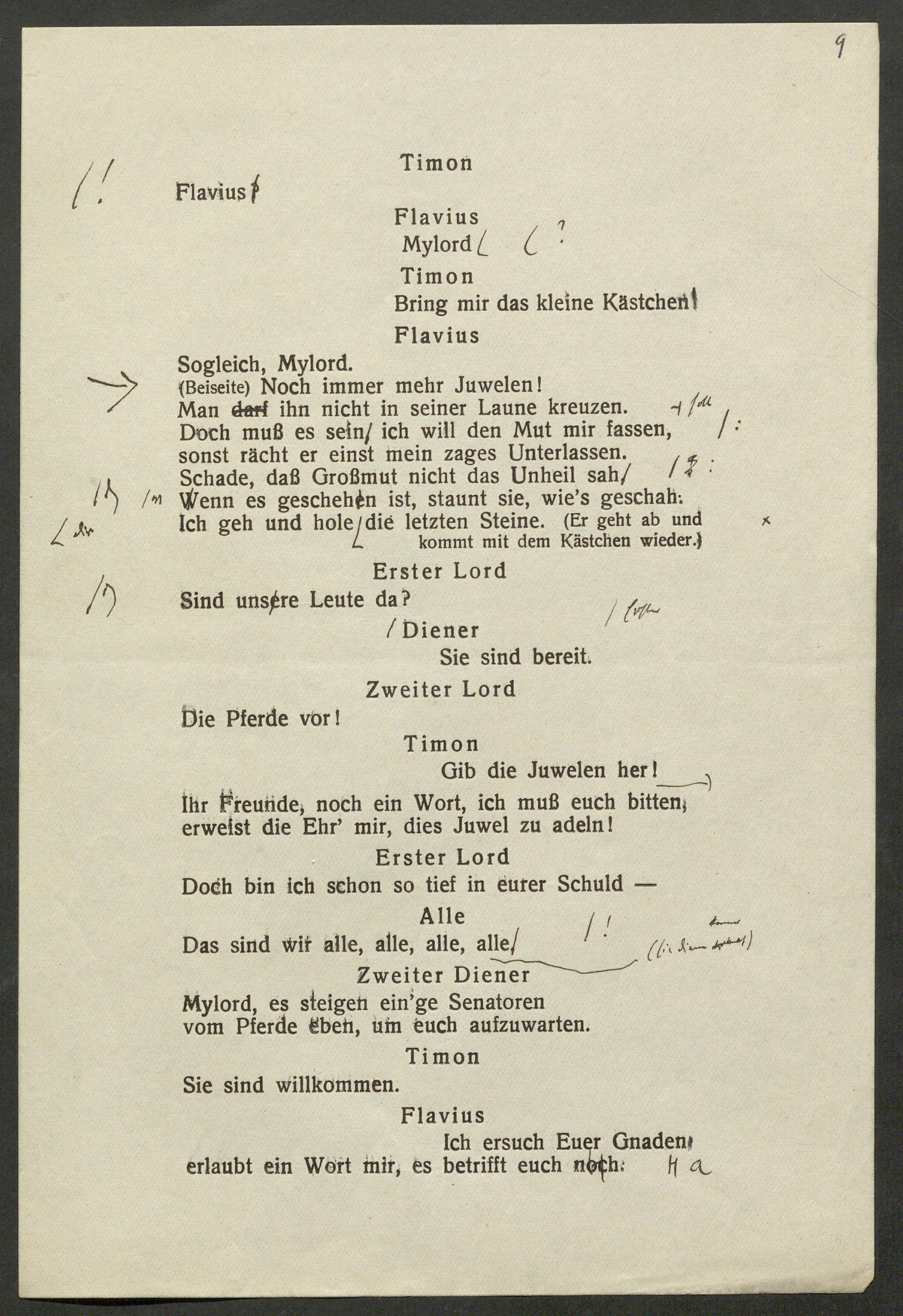 Erste Korrektur der sprachlichen Neubearbeitung von William Shakespeares "Timon von Athen"