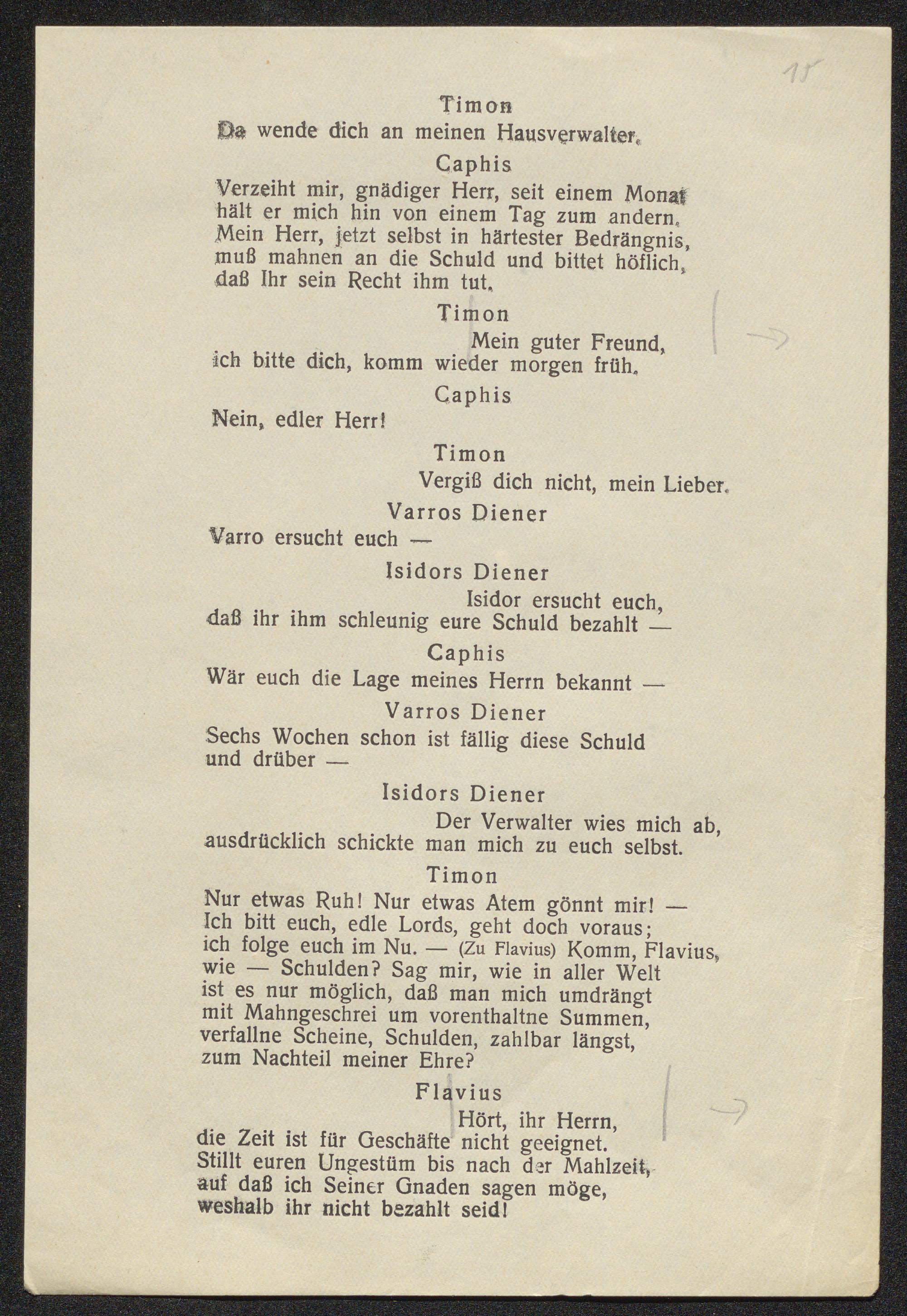Dritte Korrektur der sprachlichen Neubearbeitung von William Shakespeares "Timon von Athen"