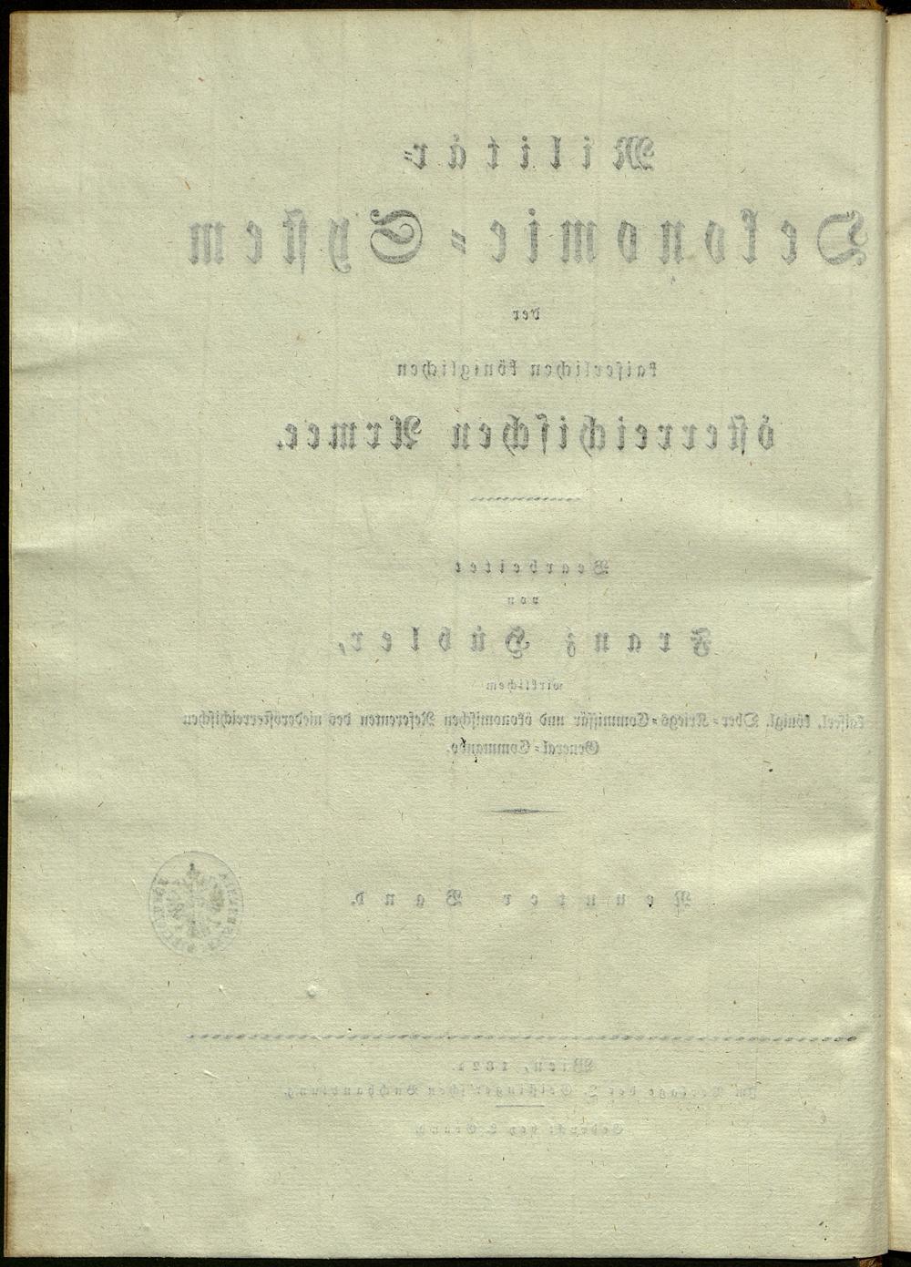 9 (1821) Militär-Ökonomie-System der kaiserlichen königlichen österreichischen Armee / bearb. von Franz Huebler