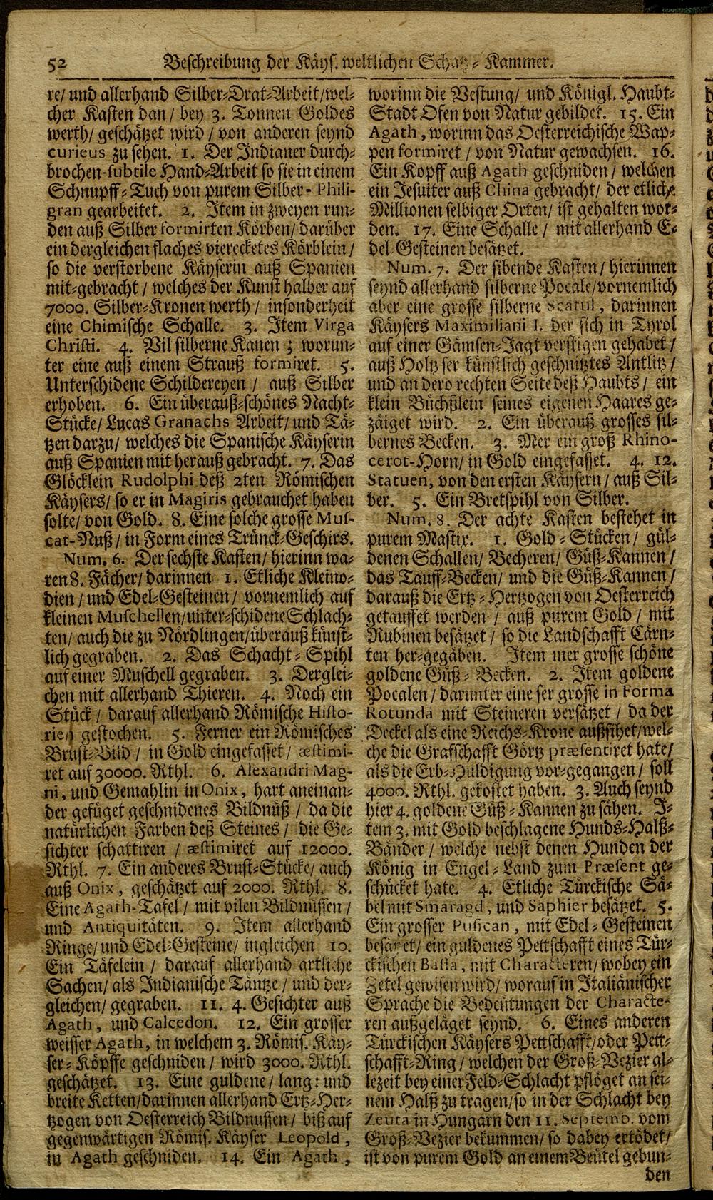 Kurtz- Lesens-Würdige Erinnerung Von Herrührung, Erbau- und Benambsung, Auch Vilfältig-anderen, alt- und neuen Seltenheiten, Bemerck- und Andenckungen, sowohl in- als um die Käyserliche Haubt- und Residentz-Stadt Wien In Oesterreich : Allen, Wissens-Begierigen, Einheimisch- als Frembden zum besten, sambt einer klaren Beschreibung von deroselben letzt-Türckischen Beläger- und frohen Entsätzung, wie auch der Käyserlichen Schatz- und Kunst-Kammer ; neu-kürtzlich in Druck verfertiget, und mit Kupffer-Stichen gezieret / [Ignatius Reiffenstuel]