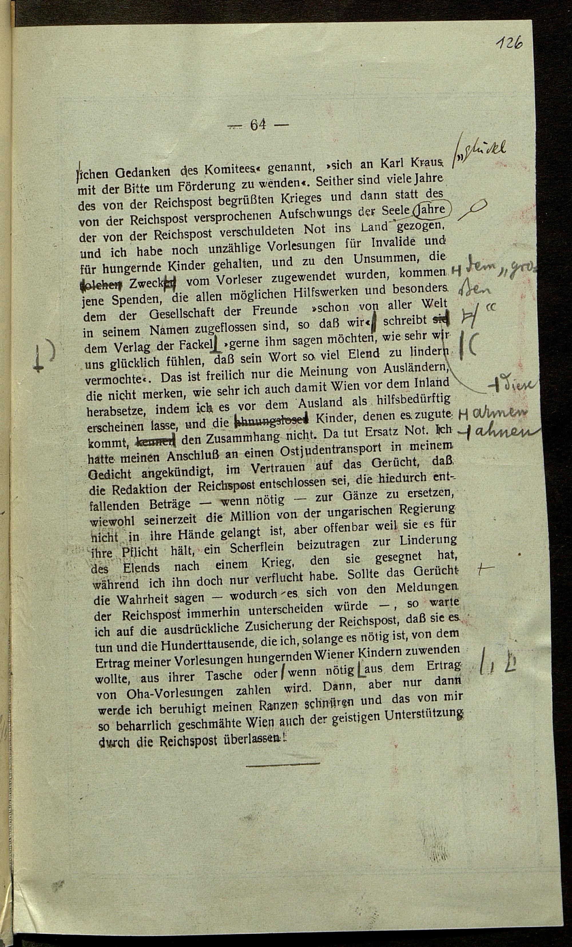 Druckfahnen von Karl Kraus zur Fackel Nr. 568/571